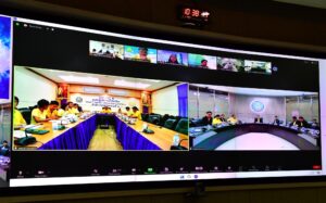 กรมชลประทาน ถนนสามเสน ดร.ธเนศร์ สมบูรณ์ ผู้อำนวยการสำนักบริหารจัดการน้ำและอุทกวิทยา เป็นประธานการประชุมคณะอนุกรรมการติดตามและวิเคราะห์แนวโน้มสถานการณ์น้ำ ผ่านระบบ Video Conference ไปยังสำนักงานชลประทานที่ 1-17 และหน่วยงานที่เกี่ยวข้อง เพื่อติดตามและวิเคราะห์สถานการณ์น้ำในอ่างเก็บน้ำ แหล่งน้ำ และแม่น้ำสายหลักต่าง ๆ สำหรับเป็นข้อมูลในการบริหารจัดการน้ำให้สอดคล้องและเหมาะสมในแต่ละพื้นที่