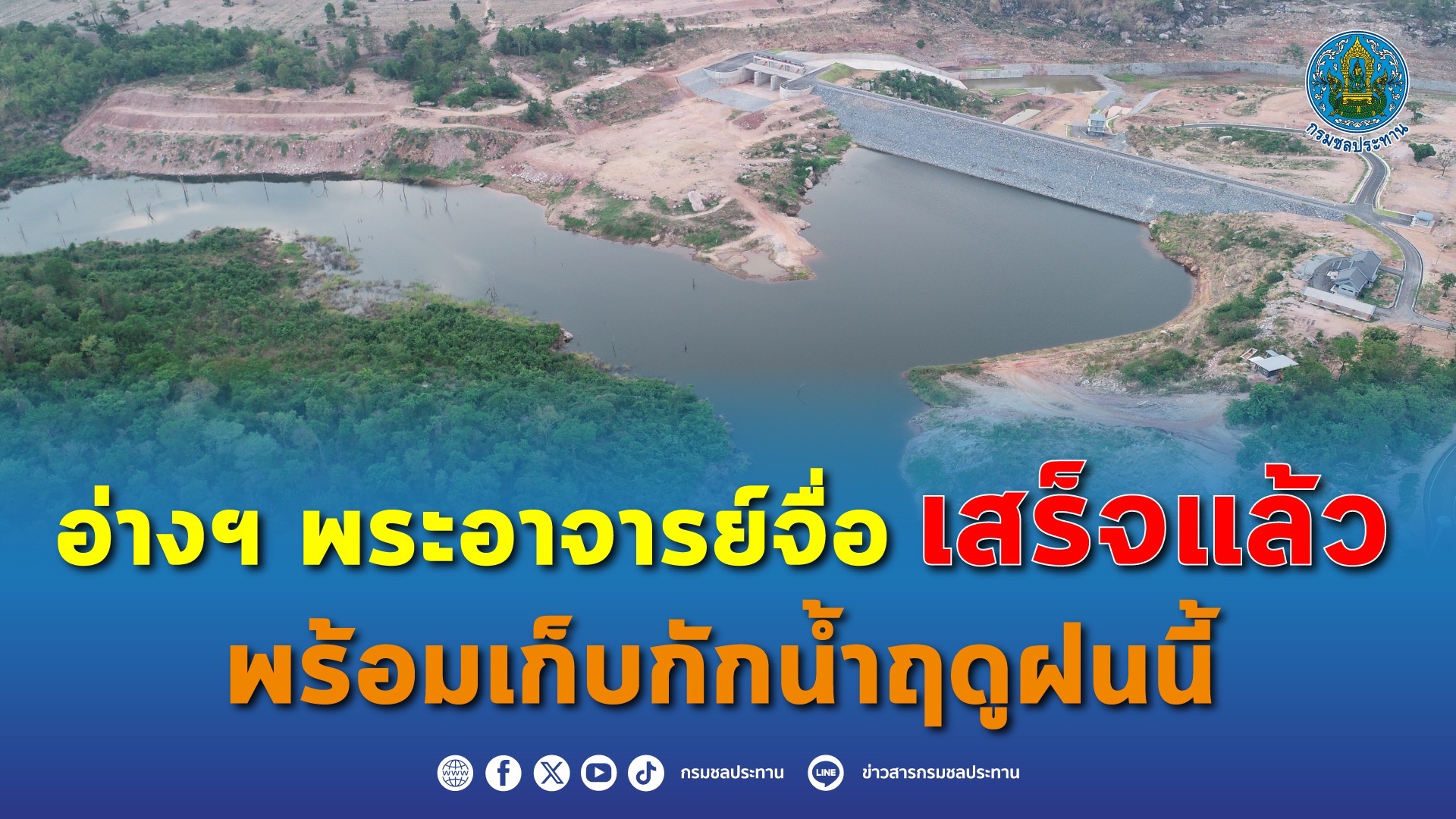 กรมชลประทาน สร้างอ่างเก็บน้ำพระอาจารย์จื่อ (ลำกระจวน) 1 ใน 5 อ่างพวงพัฒนาลุ่มน้ำชีตอนบน แล้วเสร็จ มุ่งแก้ไขปัญหาการขาดแคลนน้ำอุปโภคบริโภค ทั้งเป็นแหล่งเพาะพันธุ์ปลา เสริมอาชีพการประมง ช่วยยกระดับคุณภาพชีวิตประชาชนในพื้นที่