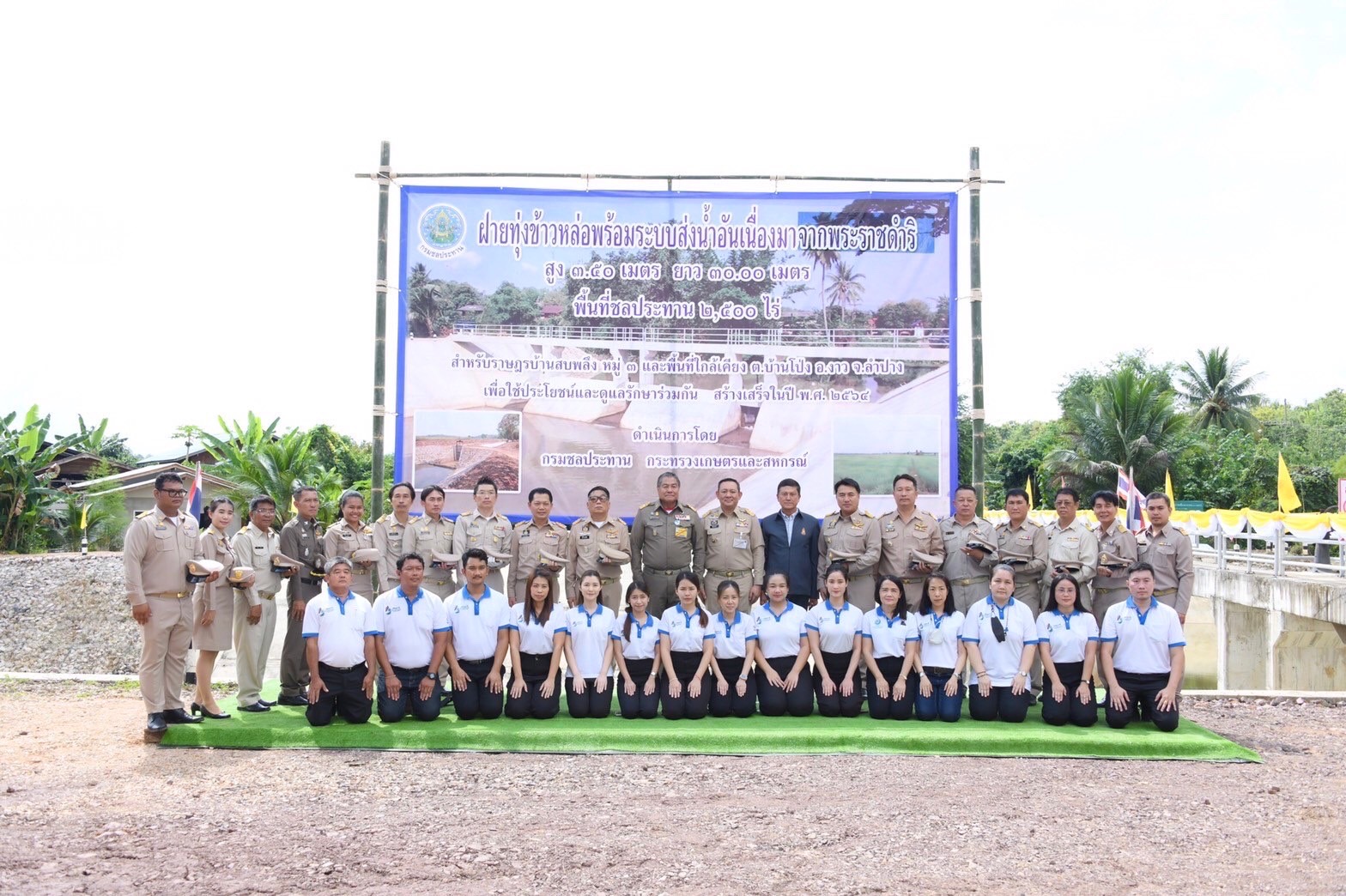 สำหรับโครงการฝายทุ่งข้าวหล่อพร้อมระบบส่งน้ำอันเนื่องมาจากพระราชดำริ พระบาทสมเด็จพระปรเมนทรรามาธิบดีศรีสินทรมหาวชิราลงกรณ พระวชิรเกล้าเจ้าอยู่หัว (รัชกาลที่ 10) ทรงพระกรุณาโปรดเกล้าฯ รับไว้เป็นโครงการอันเนื่องมาจากพระราชดำริ เมื่อวันที่ 6 กุมภาพันธ์ 2563 ตามที่ นายนวย กาถม ราษฎรบ้านทุ่งข้าวหล่อ หมู่ที่ 5 ตำบลบ้านโป่ง อำเภองาว จังหวัดลำปาง ขอพระราชทานโครงการฯ เพื่อช่วยเหลือราษฎรที่ประสบปัญหาขาดแคลนน้ำอุปโภคบริโภคและทำเกษตรในฤดูแล้งและฤดูฝน ซึ่งกรมชลประทานได้รับการสนับสนุนงบประมาณจากสำนักงาน กปร. ดำเนินการก่อสร้างแล้วเสร็จในปี 2564 ทำให้ราษฎรในพื้นที่ตำบลบ้านโป่งและตำบลหลวงใต้ มีแหล่งน้ำอุปโภคบริโภค สามารถส่งน้ำให้พื้นที่การเกษตรได้ประมาณ 4,450 ไร่
