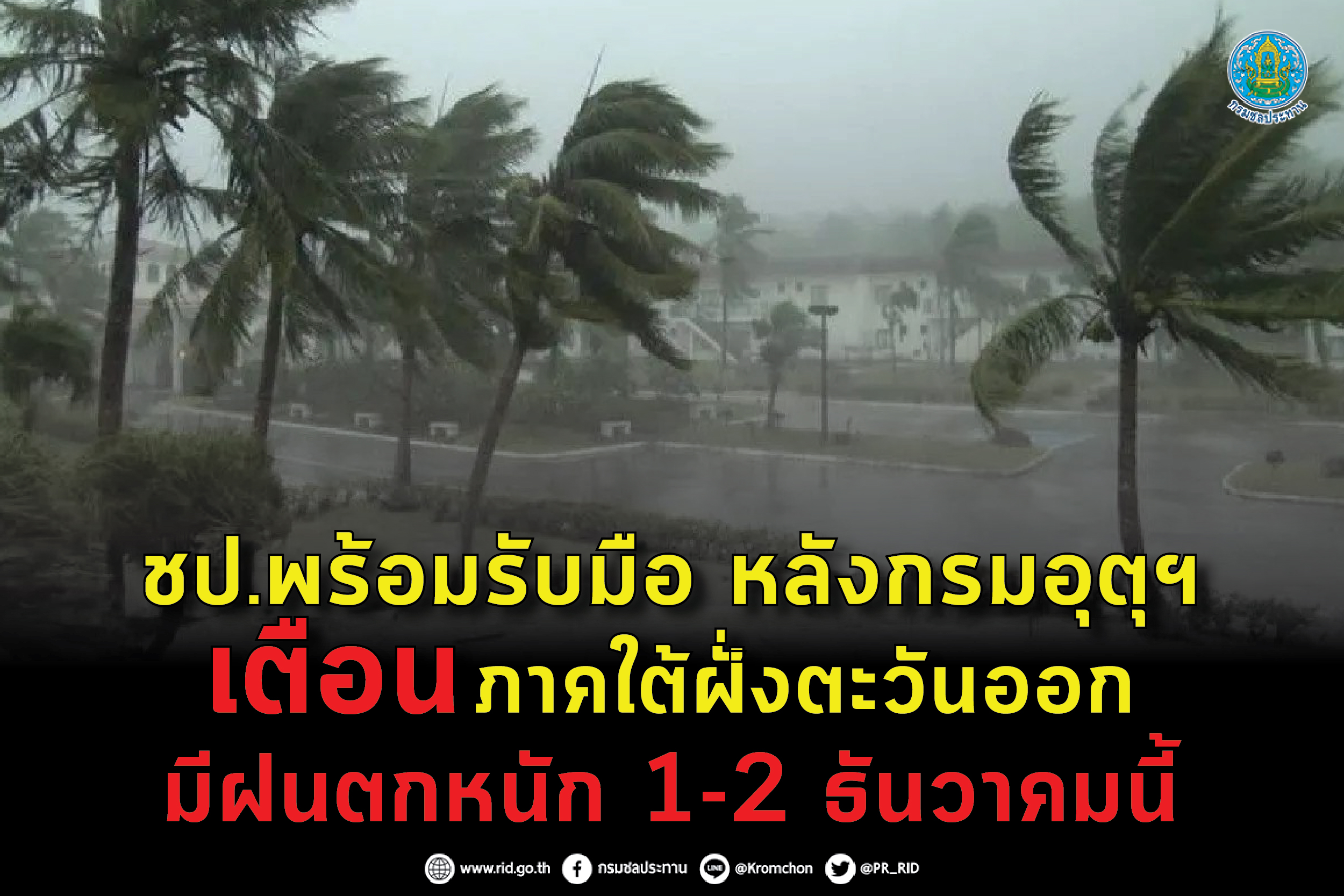 กรมชลประทาน เฝ้าระวังและรับมือฝนตกหนักวันที่ 1-2 ธันวาคมนี้ สั่งโครงการชลประทานพื้นที่เสี่ยง เตรียมเครื่องจักรเครื่องมือ พร้อมเจ้าหน้าที่จับตาสถานการณ์น้ำตลอด 24 ชั่วโมง