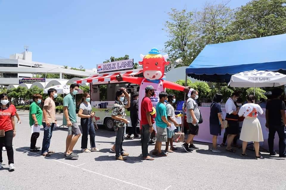 โดยประชาชนและผู้เข้ารับการฉีดวัคซีนป้องกันโรคโควิด-19 ที่ได้มีการลงทะเบียนนัดหมายผ่านระบบออนไลน์ของราชวิทยาลัยจุฬาภรณ์ สามารถเข้าร่วมรับผลิตภัณฑ์นมไทย-เดนมาร์คและเครื่องดื่มจากร้านนม THAI-DENMARK MILK LAND ได้ฟรีที่รถ MILK TRUCK ศูนย์บริการฉีดวัคซีนโควิด-19 ของราชวิทยาลัยจุฬาภรณ์ ณ CAT CONVENTION HALL เก่า ด้านหลังอาคารสำนักงานราชวิทยาลัยจุฬาภรณ์ ถนนแจ้งวัฒนะ ในวันที่ 1 มิถุนายน 2564 ตั้งแต่เวลา 9.00-18.00 น.