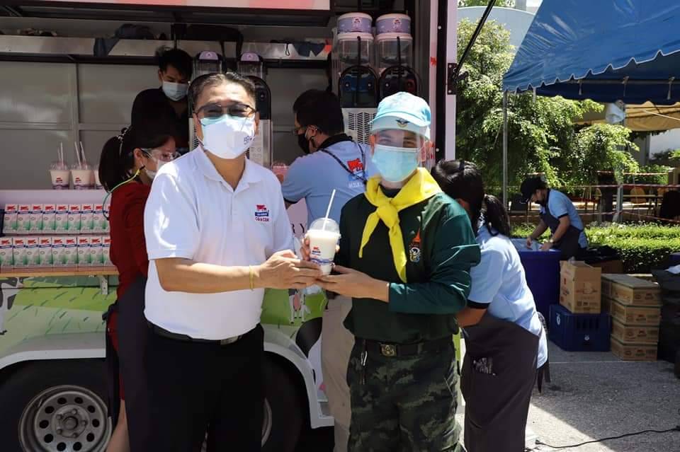 สำหรับปี 2564 นี้ได้เกิดวิกฤตการณ์ การแพร่ระบาดอย่างหนักของโรคติดเชื้อไวรัสโคโรนา 2019 (COVID-19) ที่เกิดขึ้นทั่วโลก รวมทั้งประเทศไทย อ.ส.ค. จึงได้ร่วมมือกับกรมปศุสัตว์และหน่วยงานภาคีต่างๆ ได้ปรับกิจกรรมให้สอดคล้องกับสถานการณ์ โดยหันมาทำกิจกรรมเรียนรู้การทำเมนูอาหารและเครื่องดื่มจากผลิตภัณฑ์นมไทย-เดนมาร์ค ผ่านระบบออนไลน์ภายใต้คอนเซ็ปต์ “สร้างความสุข เสริมภูมิคุ้มกัน ดื่มนมทุกวัน ดื่มได้ทุกวัย บริโภคนมได้หลากหลายเมนู” เพื่อรณรงค์ให้ผู้บริโภคหันมาดื่มนมมากขึ้นแล้ว ทั้งนี้ อ.ส.ค. ยังสนองนโยบายของภาครัฐด้วยการผนึกความร่วมมือกับทุกภาคส่วน เพื่อช่วยเหลือทั้งในงานด้านสาธารณสุขและสังคม ช่วยลดผลกระทบจากการแพร่ระบาดของโรคติดเชื้อไวรัสโคโรนา 2019 (COVID-19)ให้กับประเทศไทยผ่านพ้นวิกฤตการณ์ครั้งนี้ไปได้ด้วยดี อาทิ ร่วมมือกับราชวิทยาลัยจุฬาภรณ์ ซึ่งเป็นหนึ่งในสถานที่หน่วยให้บริการฉีดวัคซีนป้องกันโควิด-19 ด้วยการนำรถ MILK TRUCK ซึ่งเป็น MODEL ธุรกิจร้านนม THAI-DENMARK MILK LAND รูปแบบใหม่ที่จะเปิดตัวในเดือนมิถุนายนนี้ มาร่วมแจกนมให้กับ บุคลากรทางการแพทย์ และผู้เข้ารับบริการฉีดวัคซีนป้องกันโรคโควิด-19 ”