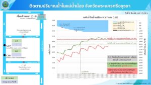 ในด้านการบริหารจัดการน้ำลุ่มน้ำเจ้าพระยา กรมชลประทานได้ปรับลดการระบายน้ำจากเขื่อนภูมิพลและเขื่อนสิริกิติ์รวมกันลงถึงวันละ 15 ล้าน ลบ.ม. (จากเดิมระบายน้ำรวมวันละ 30 ล้าน ลบ.ม.) พร้อมกับดำเนินการจัดจราจรน้ำบริเวณเหนือเขื่อนเจ้าพระยาอย่างต่อเนื่อง โดยน้ำฝนที่ตกในพื้นที่ตอนบนจะไหลรวมลงสู่แม่น้ำเจ้าพระยา บริเวณสถานีวัดน้ำ C.2 จังหวัดนครสวรรค์ พบว่ามีปริมาณน้ำไหลผ่าน 1,341 ลบ.ม./วินาที คิดเป็น 37% ของลำน้ำ และยังคงมีแนวโน้มทรงตัว โดยมีการกระจายน้ำเข้าระบบชลประทานสองฝั่งรวม 329 ลบ.ม./วินาที จากนั้นระบายน้ำผ่านเขื่อนเจ้าพระยาที่อัตรา 1,100 ลบ.ม./วินาที