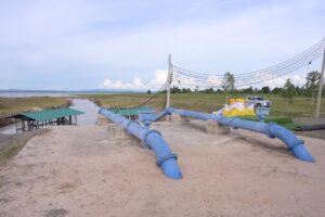 จุดที่ 2 โครงการก่อสร้างสถานีสูบน้ำด้วยไฟฟ้าบ้านราษฎร์เจริญพร้อมระบบส่งน้ำอันเนื่องจากพระราชดำริ ตำบลอ่างศิลา อำเภอพิบูลมังสาหาร จังหวัดอุบลราชธานี (ฎีกา ร.10)
