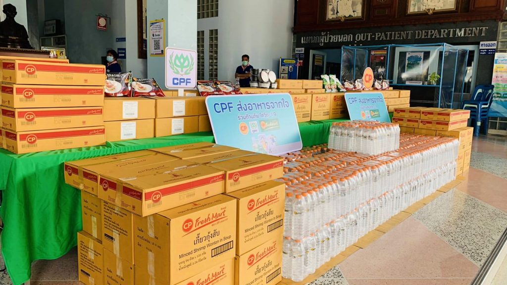 ด้าน นายเกริกก้อง ไชยวงศ์ ผู้แทน ซีพีเอฟ กล่าวว่า บริษัทได้ร่วมส่งมอบอาหารปลอดภัยให้ทีมแพทย์และพยาบาลมาตั้งแต่การแพร่ระบาดโควิด-19 เมื่อปี 2563 จนถึงปัจจุบัน โดยนำความเชี่ยวชาญในการผลิตและกระจายอาหารปลอดภัย มาช่วยเหลือสังคมในภาวะวิกฤติ และยังยืนหยัดร่วมเป็นกำลังหนุนภาครัฐบาล ต่อสู้กับวิกฤตโควิด-19 ระลอกใหม่อย่างเต็มที่ ด้วยมอบอาหารพร้อมทานแก่รพ.สนาม ไปแล้วกว่า 27,000 แพ็ค และน้ำดื่ม 6,000 ขวด พร้อมสนับสนุนวัตถุดิบ ทั้งเนื้อหมูสด เนื้อไก่สด ไข่ไก่ น้ำดื่ม และข้าวสาร สำหรับปรุงเป็นอาหารพร้อมทาน เพื่อเสริมพลังกายและส่งกำลังใจให้กับบุคลากรทางการแพทย์ที่ถือเป็นด่านหน้า ซึ่งเสียสละตนเองปฏิบัติงานอย่างเต็มกำลัง ให้ได้บริโภคอาหารที่ปลอดภัย อิ่มอร่อย สะดวก และเพียงพอ