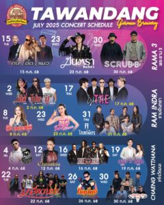 โดยในเดือนกรกฎาคม 2568 นี้ มีถึง 15 คอนเสิร์ต กระจายให้ความสุขกับผู้มาใช้บริการโรงเบียร์ฯ ทั้ง 3 แห่ง ได้แก่ สาขา พระราม 3, รามอินทรา และแจ้งวัฒนะ อาทิ เสือ/โป่ง/ปู, จ๊ะ นงผณี, Silly Fools, ลำไย ไหทองคำ, ไหมไทย และคาราบาว เป็นต้น (รายละเอียดในตาราง)