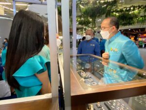 “12 – 20 สิงหาคมนี้ ผมขอเชิญชวนทุกท่านมาชม ชิม ช้อป และร่วมภาคภูมิใจไปกับผลิตภัณฑ์จากภูมิปัญญาไทย โดยเฉพาะผ้าไทย เพื่อเป็นส่วนหนึ่งในการช่วยสร้างโอกาส และสร้างรายได้ให้กับผู้ผลิตผู้ประกอบการ OTOP ที่อาคารชาเลนเจอร์ 1 – 3 เมืองทองธานี ” นายสมคิด จันทมฤก กล่าวทิ้งท้าย