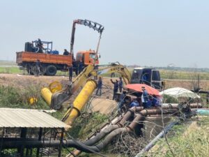 สำนักงานชลประทานที่ 10 ติดตั้งเครื่องสูบน้ำเพื่อสนับสนุนน้ำพื้นที่ลุ่มต่ำทุ่งบางกุ้ง และส่งน้ำให้เกษตรกรเพาะปลูกและเก็บเกี่ยวได้ทันก่อนฤดูน้ำหลาก บริเวณ ตำบลทับน้ำ อำเภอบางปะหัน จังหวัดพระนครศรีอยุธยา
