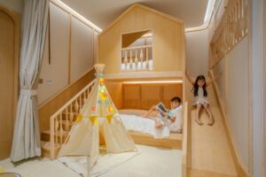 ครอบครัวที่กำลังมองหาสถานที่พักผ่อนท่ามกลางธรรมชาติอันร่มรื่น สามารถเลือกห้องพักสำหรับครอบครัว ทั้งห้องแฟมิลี่ สวีทยอดนิยม ที่มาพร้อมกับเตียงสองชั้น พื้นที่เล่นและระเบียงกว้างขวางที่สามารถ เลือกระหว่าง ห้องวิวทะเล หรือห้อง พูลแอคเซส เข้าถึงสระว่ายน้ำได้โดยตรง โดยสระว่ายน้ำโซนครอบครัวมาพร้อมสไลเดอร์น้ำถึง 4 สไลเดอร์ พื้นที่สระแบบตื้นสำหรับเด็ก และบาร์สมูทตี้ห้องแกรนด์ แฟมิลี่ ซีวิว สวีท (190 ตร.ม.) สำหรับครอบครัวที่ต้องการพื้นที่อันกว้างขวาง มีพื้นที่มากกว่าห้องแฟมิลี่สวีทอื่นๆ ถึงสองเท่า โดยมีเตียงสองชั้น พร้อมสไลเดอร์ส่วนตัว ที่เด็กๆ สามารถตื่นนอนและสไลด์ลงมาเล่นในพื้นที่เล่นส่วนตัวด้านล่างได้ ผู้ปกครองสามารถพักผ่อนในพื้นที่นอน ห้องนั่งเล่น และทำงานที่กว้างขวางพร้อมวิวทะเลอันสวยงาม ทั้งครอบครัวสามารถรับประทานอาหารร่วมกันที่โต๊ะอาหารภายในห้องหรือเพลิดเพลินกับอาหารว่างบนระเบียง ห้องนี้ยังมาพร้อมกับทางเดินเชื่อมต่อระหว่างห้องแกรนด์ แฟมิลี่ ซีวิว สวีทและห้องแฟมิลี่ สวีท สำหรับครอบครัวขนาดใหญ่เป็นพิเศษได้มาพักผ่อนและใช้เวลาร่วมกัน