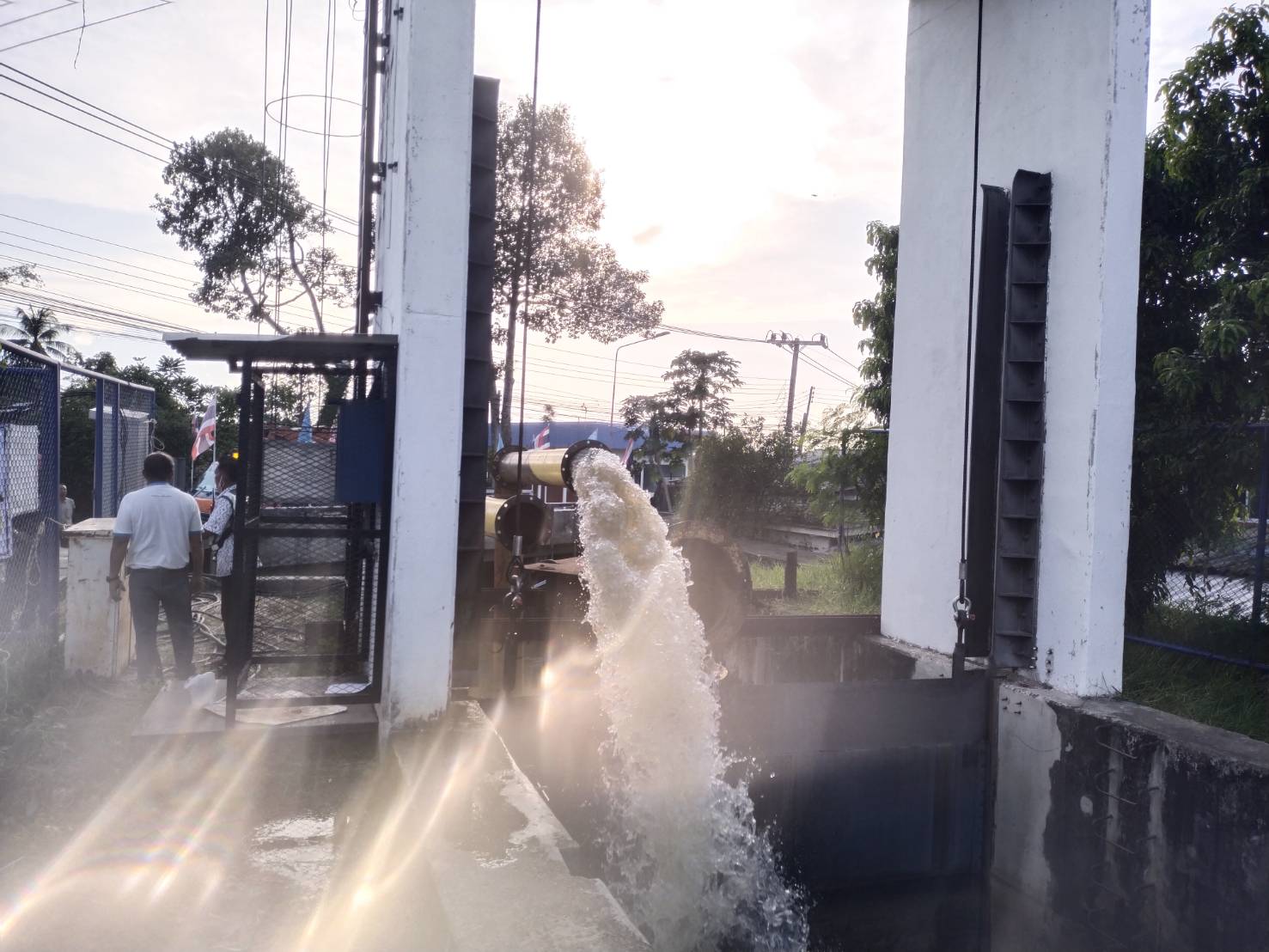 นายธณกฤต พหลทัพ ผู้อำนวยการโครงการชลประทานปทุมธานี ชี้แจงว่า ตามข้อร้องเรียนดังกล่าว คือบริเวณประตูระบายน้ำคลองบ้านธาตุ หมู่ที่ 2 ต.สามโคก อ.สามโคก จ.ปทุมธานี ที่เครื่องสูบน้ำเกิดการชำรุดเสียหาย ไม่สามารถใช้งานได้ตามปกติ ทางโครงการชลประทานปทุมธานี จึงใช้เครื่องสูบน้ำที่ประตูระบายน้ำคลองเกาะปิ้น มาช่วยในการสูบระบายน้ำในพื้นที่คลองบ้านธาตุและคลองเกาะปิ้น ซึ่งเป็นพื้นที่เชื่อมต่อกันแทนเครื่องที่ชำรุด แต่เมื่อวันที่ 21 สิงหาคม 2565 ที่ผ่านมา เครื่องสูบน้ำที่ประตูระบายน้ำคลองเกาะปิ้น ได้เกิดการชำรุดขณะสูบน้ำ จึงได้นำเครื่องสูบน้ำเคลื่อนที่ขนาด 12 นิ้ว จำนวน 2 เครื่อง เข้าติดตั้งเพื่อช่วยระบายน้ำในพื้นที่ โดยในวันที่ 27 สิงหาคม 2565 ได้รับแจ้งเหตุหม้อแปลงไฟฟ้าที่ประตูระบายน้ำคลองเกาะปิ้นเกิดการชำรุดเสียหาย ทำให้ไม่สามารถเดินเครื่องสูบน้ำต่อได้ ประกอบกับในช่วงวันที่ 26 – 27 สิงหาคม 2565 มีฝนตกหนักต่อเนื่องในพื้นที่ ส่งผลให้ระดับน้ำสูงขึ้นจากระดับน้ำที่รักษาไว้ประมาณ 10 – 15 เซนติเมตร เบื้องต้นโครงการชลประทานปทุมธานี ได้นำหม้อแปลงไฟฟ้าเข้าไปเปลี่ยนและดำเนินการสูบระบายน้ำอย่างต่อเนื่อง พร้อมเร่งซ่อมแซมเครื่องสูบน้ำบริเวณประตูระบายน้ำคลองบ้านธาตุ และประตูระบายน้ำคลองเกาะปิ้น ให้กลับมาใช้งานได้โดยเร็วที่สุด ปัจจุบันเครื่องสูบน้ำที่ประตูระบายน้ำคลองบ้านธาตุ สามารถซ่อมแซมกลับมาใช้งานได้แล้ว 1 เครื่อง เมื่อรวมกับเครื่องสูบน้ำที่ติดตั้งที่ประตูระบายน้ำคลองเกาะปิ้น อีก 2 เครื่อง หากมีฝนตกในพื้นที่จะสามารถสูบระบายน้ำได้ทันที