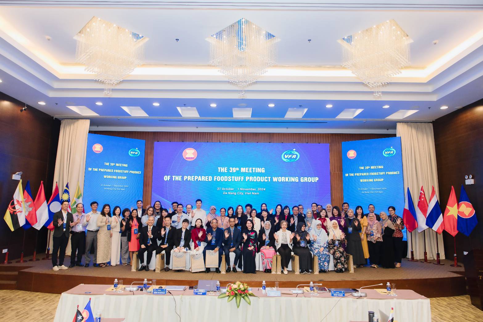 น.สพ.พิทักษ์ ชายสม ผู้เชี่ยวชาญด้านมาตรฐานสุขอนามัยสัตว์ มกอช. นำทีมประเทศไทยประกอบด้วย สพ.ญ.ดร.มินตรา ลักขณา สพ.ญ.ฉันทิสา อารีเสวต มกอช. ดร.กิ่งเดือน สมจิตต์ ผู้แทนกรมประมง พร้อมผู้แทน อย. สภาอุตสาหกรรมแห่งประเทศไทย และสภาหอการค้าแห่งประเทศไทย เข้าร่วมการประชุม ACCSQ Prepared Foodstuff Product Working Group (PFPWG) ครั้งที่ 39 ระหว่างวันที่ 31 ตุลาคม – 1 พฤศจิกายน 2567 และการประชุม ASEAN Committee on Harmonisation of Prepared Foodstuff Standards (ACHPFS) ครั้งที่ 10 ระหว่างวันที่ 29 – 30 ตุลาคม 2567 ณ เมืองดานัง สาธารณรัฐสังคมนิยมเวียดนาม