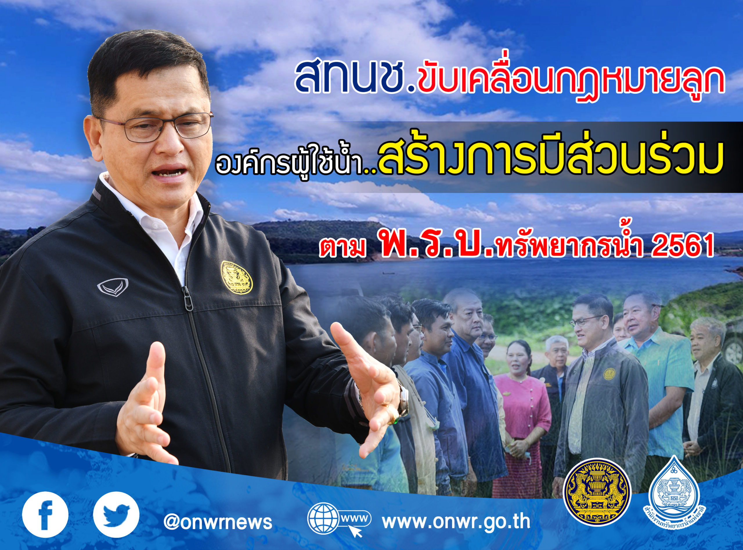 “องค์กรผู้ใช้น้ำจะมีบทบาทสำคัญในการช่วยบริหารจัดการน้ำ กล่าวคือ องค์กรผู้ใช้น้ำจะเป็นช่องทางให้ผู้ใช้น้ำที่มีเป้าประสงค์ร่วมกันจากลุ่มน้ำเดียวกัน บริเวณเดียวกัน รวมตัวกันเพื่อเกิดให้การบริหารจัดการน้ำอย่างมีประสิทธิภาพ สอดคล้องกับความต้องการ สถานการณ์และปัญหาในพื้นที่ รวมทั้งตอบสนองต่อการพัฒนาเศรษฐกิจ สังคม และการอนุรักษ์ฟื้นฟูทรัพยากรธรรมชาติและสิ่งแวดล้อม โดยใช้กลุ่มเครือข่ายและองค์กรต่าง ๆ เป็นกลไกในการบริหารจัดการทรัพยากรน้ำในระดับพื้นที่ โดยสามารถนำเสนอโครงการต่างๆ อันเป็นประโยชน์ต่อชุมชนสู่คณะกรรมการลุ่มน้ำและคณะกรรมการทรัพยากรน้ำจังหวัดได้โดยตรง หรือกระทั่งสิทธิในการร่วมกันหารือ แลกเปลี่ยนข้อมูล ไกล่เกลี่ย แก้ปัญหาร่วมกัน กรณีเกิดข้อพิพาทระหว่างผู้ใช้น้ำด้วยกันในพื้นที่ลุ่มน้ำ รวมถึงเป็นตัวแทนองค์กรผู้ใช้น้ำที่มาจากคณะกรรมการลุ่มน้ำยังสามารถแสดงความคิดเห็นในคณะกรรมการระดับชาติ คือ กนช. ได้อีกด้วย องค์กรผู้ใช้น้ำจึงจัดเป็นฟันเฟืองสำคัญในการมีส่วนช่วยในการพัฒนาและบริหารจัดการทรัพยากรน้ำของประเทศครอบคลุมทุกมิติมากยิ่งขึ้น” เลขาธิการ สทนช. กล่าว