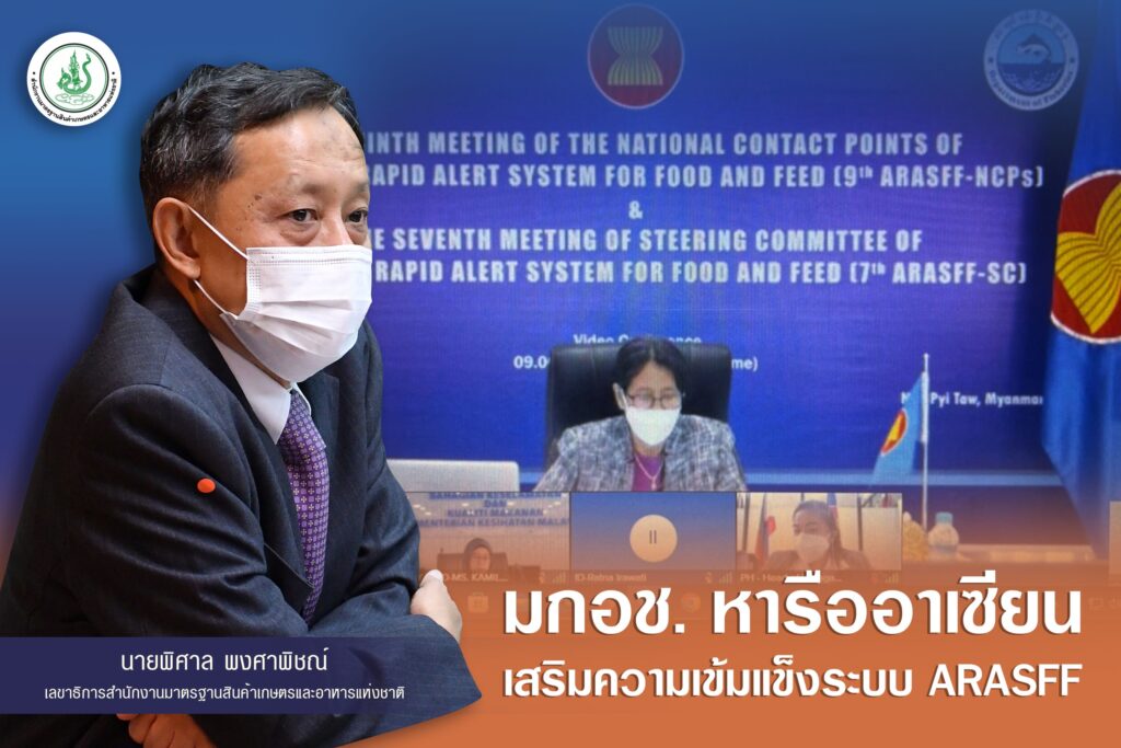 นายพิศาล พงศาพิชณ์ เลขาธิการสำนักงานมาตรฐานสินค้าเกษตรและอาหารแห่งชาติ (มกอช.) เปิดเผยว่า มกอช. ได้มอบหมายให้นางสาวรวินันท์ ฉ่ำเฉลิม ผู้อำนวยการกองนโยบายมาตรฐานสินค้าเกษตรและอาหาร หัวหน้าคณะฝ่ายไทย ในการประชุม ARASFF National Focal Points ครั้งที่ 9 พร้อมด้วยนายสัญชัย ตันตยาภรณ์ ที่ปรึกษา มกอช. หัวหน้าคณะฝ่ายไทย ในการประชุม ARASFF Steering Committee ครั้งที่ 7 เข้าร่วมการประชุมหารือ the 9th ARASFF NCP & the 7th ARASFF SC Meetings ซึ่งจัดขึ้นระหว่างวันที่ 4-5 เมษายน 2565 ผ่านสื่ออิเล็กทรอนิกส์ เพื่อเสริมสร้างความเข้มแข็งระบบแจ้งเตือนความปลอดภัยอาหารและอาหารสัตว์