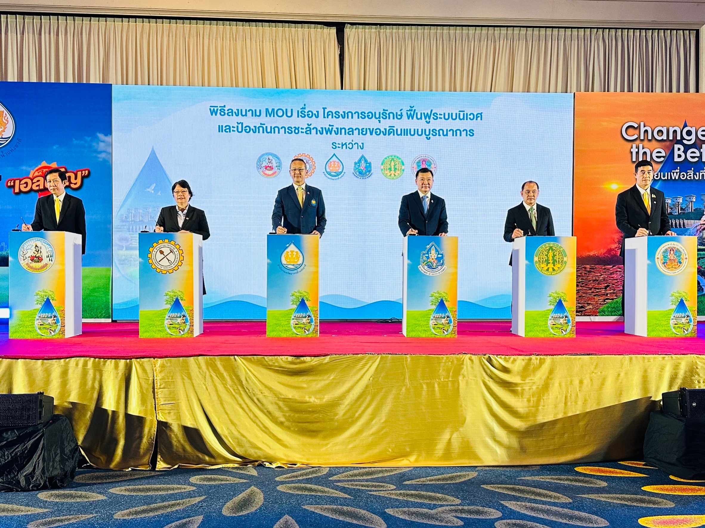 ด้าน ดร.สุรสีห์ กล่าวเพิ่มเติมว่า ภายในงานวันนี้มีหลากหลายกิจกรรมสำคัญ โดย สทนช. และอีก 5 หน่วยงานที่เกี่ยวข้อง ได้แก่ กรมพัฒนาที่ดิน กรมอุทยานแห่งชาติ สัตว์ป่าและพันธุ์พืช กรมป่าไม้ กรมทรัพยากรธรณี กรมทรัพยากรน้ำ ได้ร่วมพิธีลงนามบันทึกความเข้าใจ (MOU) “การอนุรักษ์ ฟื้นฟูระบบนิเวศ และป้องกันการชะล้างพังทลายของดินแบบบูรณาการ ภายใต้แผนแม่บทการบริหารจัดการทรัพยากรน้ำ 20 ปี” เพื่อบูรณาการความร่วมมือในด้านต่าง ๆ ในการส่งเสริมประสิทธิภาพการอนุรักษ์และฟื้นฟูระบบนิเวศ รวมถึงร่วมขับเคลื่อนแผนบูรณาการเชิงพื้นที่ระดับลุ่มน้ำตามเป้าหมายการบริหารจัดการทรัพยากรน้ำ 20 ปี นอกจากนี้ ได้มีการจัดการเสวนา “ผ่าทางรอดประเทศไทย จับมือฝ่าวิกฤตภัย “เอลนีโญ”” เพื่อเป็นเวทีในการแลกเปลี่ยนข้อมูลและความคิดเห็นของผู้แทนจากแต่ละภาคส่วนในประเด็นต่าง ๆ ที่เป็นประโยชน์และสามารถนำไปปรับใช้ในการรับมือสถานการณ์เอลนีโญ รวมถึงการจัดนิทรรศการของ สทนช. ที่แสดงให้เห็นถึงสถานการณ์เอลนีโญในปัจจุบัน การวิเคราะห์คาดการณ์แนวโน้มในอนาคต ภาพการเตรียมพร้อมการรับมือสถานการณ์เอลนีโญของประเทศไทย และการบูรณาการการทำงานในด้านอนุรักษ์และฟื้นฟู ระหว่างหน่วยงานที่ได้มีการลงนาม MOU ร่วมกัน