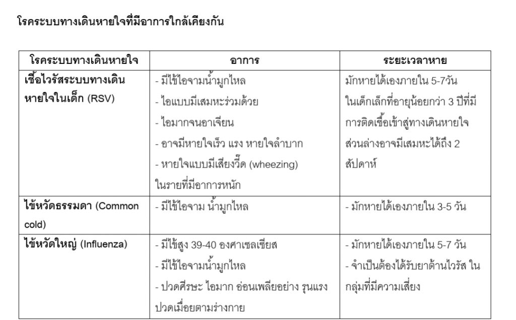 บทความตอนนี้ พญ.สิริรักษ์ กาญจนธีระพงค์ กุมารแพทย์ผู้เชี่ยวชาญโรคภูมิแพ้และ ภูมิคุ้มกัน วิทยา โรงพยาบาลนวเวช จึงได้นำความรู้เกี่ยวกับการติดเชื้อไวรัสในระบบทางเดินหายใจที่มัก เกิดกับเด็กเล็กมา ให้คุณพ่อคุณแม่ได้รู้จัก ซึ่งหลายคนก็อาจสับสนระหว่าง RSV ไข้หวัดใหญ่ และไข้หวัดธรรมดา คุณหมอก็เลยมี ข้อมูลมาให้เปรียบเทียบด้วยว่าแต่ละโรคมีความแตกต่างกันอย่างไร