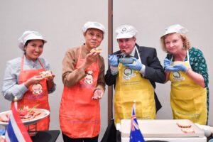 นอกจากนี้ มกอช. ในฐานะเจ้าภาพจัดการประชุม ยังได้จัดกิจกรรมเลี้ยงรับรองคณะผู้แทนไทยและออสเตรเลีย เพื่อฉลองความสำเร็จการเปิดตลาดเนื้อเป็ดปรุงสุกไทยและอะโวกาโดออสเตรเลีย โดยประธานร่วมของทั้งสองฝ่าย พร้อมด้วย ผอ. กนม. และรักษาการณ์เอกอัครราชทูตออสเตรเลีย ประจำประเทศไทย ได้ร่วมสาธิตวิธีการทำสลัดอกเป็ดรมควันและ avocado on toast และแนะนำการนำวัตถุดิบดังกล่าวไปใช้ประกอบเป็นเมนูอาหารต่างๆ ซึ่งได้รับการตอบรับจากผู้เข้าร่วมกิจกรรมเป็นอย่างดี โดยกิจกรรมในครั้งนี้ได้กระชับความสัมพันธ์และการหารือที่ใกล้ชิดระหว่างภาคส่วนที่เกี่ยวข้อง อันจะนำไปสู่การดำเนินงานร่วมกันที่ราบรื่นต่อไป