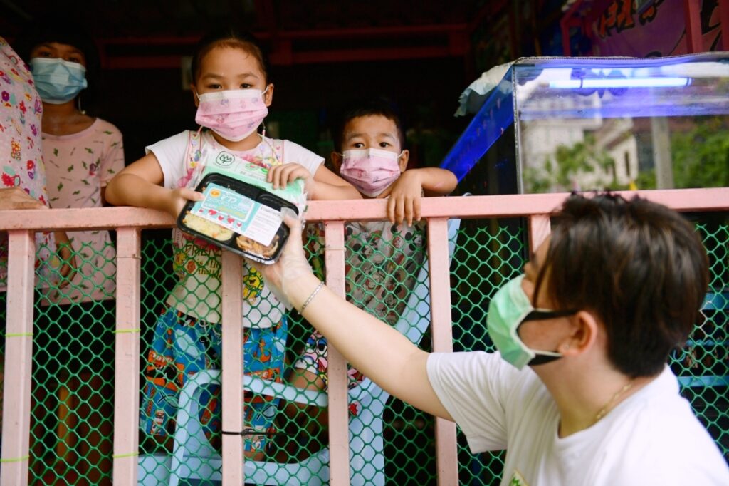 กระทรวงเกษตรและสหกรณ์ สำนักงานเขตดอนเมือง สถานีตำรวจนครบาลดอนเมือง และบริษัท เจริญโภคภัณฑ์อาหาร จำกัด (มหาชน) หรือซีพีเอฟ ผนึกกำลังสนับสนุนข้าวกล่องอุ่นร้อนพร้อมรับประทาน เครื่องดื่มวิตามิน และหน้ากากอนามัยซีพี ภายใต้โครงการ “CPF ส่งอาหารจากใจ ร่วมต้านภัยโควิด-19” เพื่อบรรเทาความเดือดร้อนแก่ประชาชนชาวดอนเมือง รวม 95 ชุมชน จากสถานการณ์โควิด และช่วยแบ่งเบาภาครัฐในการจัดการด้านอาหารให้ผู้กักตัวที่บ้าน (Home Isolation) เพื่อลดการแพร่กระจายเชื้อ โดยมี นายองอาจ คล้ามไพบูลย์ อดีตรัฐมนตรีประจำสำนักนายกรัฐมนตรี นายธัญญ์นิธิ ชวรัตน์นิธิโชติ ที่ปรึกษา รมว.เกษตรฯ พร้อมด้วย นายสุชาติ ทะเลลึก นักพัฒนาสังคม ผู้แทนผู้อำนวยการสำนักงานเขตดอนเมือง ร.ต.อ.สมหมาย กองสิน รองผู้กำกับ สน.ดอนเมือง และนางพรรณินี นันทพานิช รองกรรมการผู้จัดการอาวุโส ด้านสื่อสารองค์กรและประชาสัมพันธ์ ซีพีเอฟ ร่วมมอบแก่ น.ส.สุธรามาศ ชมชื่น ประธานชุมชนเลียบคูนายกิม 3 และผู้นำชุมชน