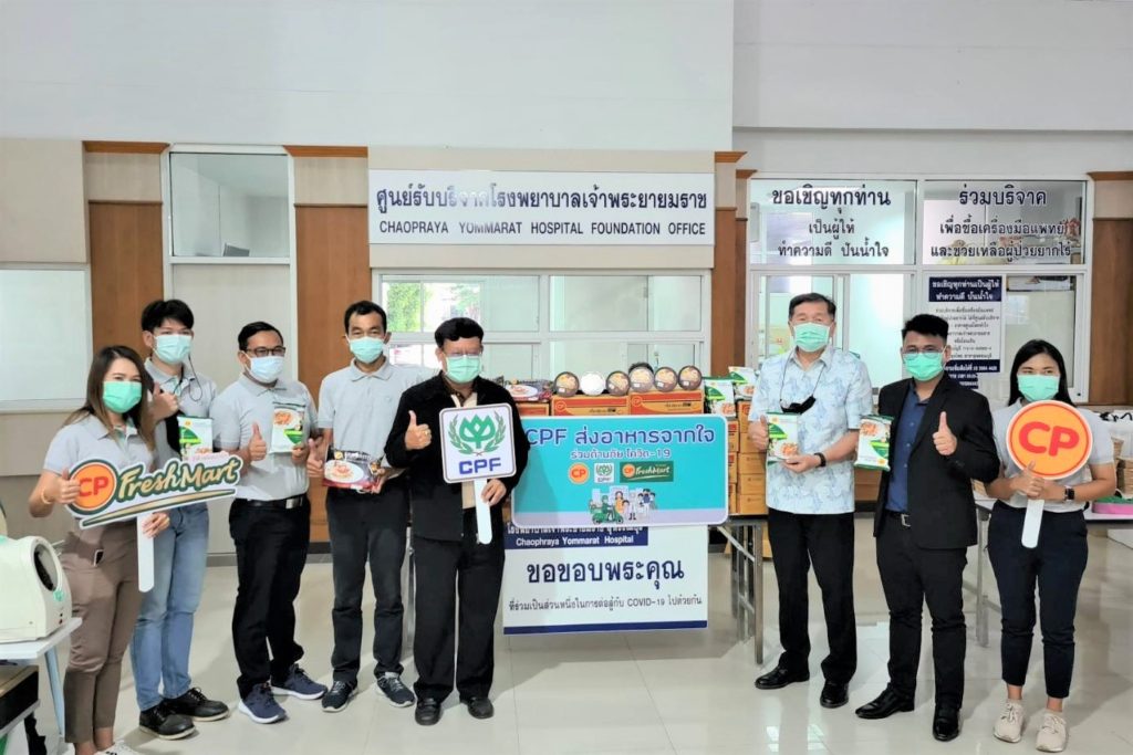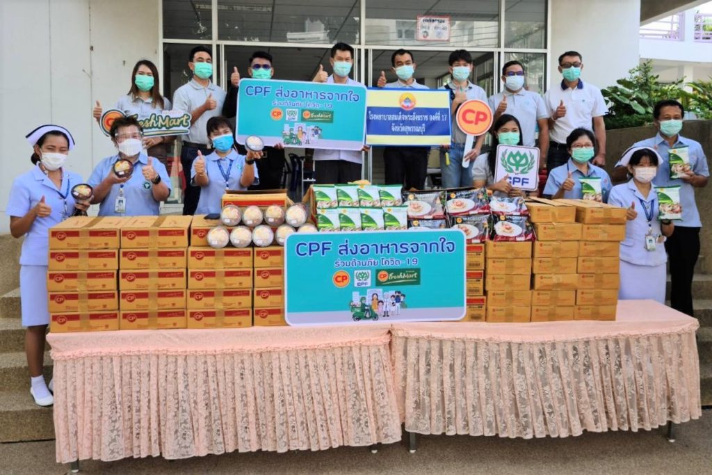 บริษัท เจริญโภคภัณฑ์อาหาร จำกัด (มหาชน) หรือซีพีเอฟ และ บริษัท ซีพี ออลล์ จำกัด (มหาชน) ร่วมกันมอบอาหารและครุภัณฑ์ทางการแพทย์สนับสนุนแพทย์ พยาบาล และบุคลาการทางการแพทย์ 3 โรงพยาบาล ในจังหวัดสุพรรณบุรี ภายใต้โครงการ “CPF ส่งอาหารจากใจ ร่วมต้านภัยโควิด-19” และ โครงการ “คนไทยไม่ทิ้งกัน” อย่างต่อเนื่อง ตามนโยบายเครือเจริญโภคภัณฑ์ ภายใต้โครงการ “ซีพี ร้อยเรียงใจ สู้ภัยโควิด-19”