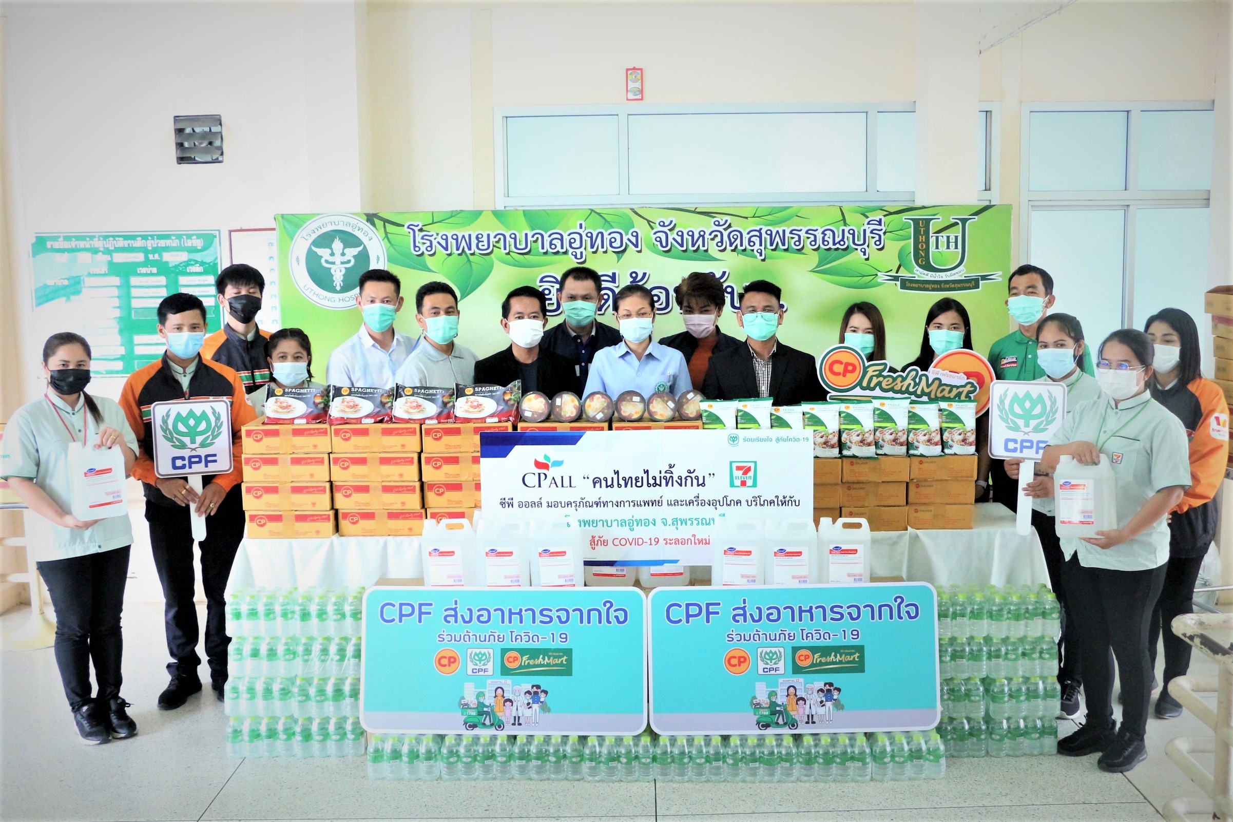 พญ.สมพิศ จำปาเงิน ผู้อำนวยการ โรงพยาบาลอู่ทอง อำเภออู่ทอง กล่าวขอบคุณเครือซีพีและบริษัทในเครือฯ ทั้งซีพีเอฟที่สนับสนุนอาหารพร้อมทาน เพราะกองทัพต้องเดินด้วยท้อง กำลังคนของเราต้องให้การดูแลผู้ป่วยโควิดที่มารักษาตัวกับโรงพยาบาล 28 ราย อาหารนี้จึงช่วยเติมพลังกายให้กับทั้งเจ้าหน้าที่และผู้ป่วย ส่วนซีพี ออลล์ มอบแอลกอฮอลล์ เพื่อสนับสนุนการบริการ และยังมีน้ำดื่มมอบให้ด้วย ทั้งหมดนี้ถือเป็นขวัญกำลังใจและเสริมแรงให้บุคลากรทุกคนมีพละกำลัง ทั้งแรงกายและแรงใจในการทำหน้าที่ต่อไป