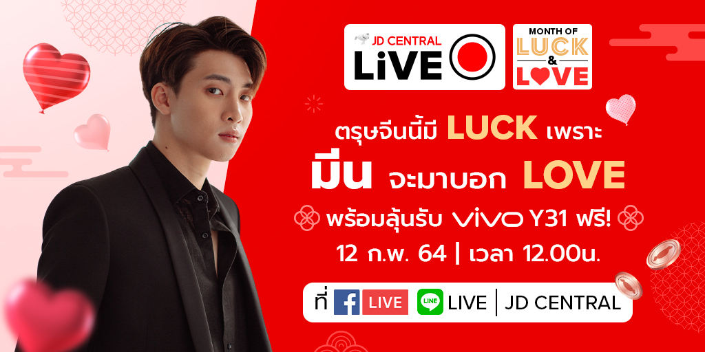 นอกจากดีลปังๆ กับสินค้าคุณภาพดีราคาสุดล้ำแล้ว ยังมีกิจกรรมพิเศษสุดๆ “ตรุษจีนนี้ มี LUCK เพราะ มีน จะมาบอก LOVE” กับหนุ่มตี๋สุดหล่อ มีน พีรวิชญ์ ลุ้นรับของรางวัลสุดพิเศษจาก VIVO เพียงร่วมสนุกตอบคำถาม “วาเลนไทน์นี้อยากให้ของขวัญอะไรกับมีน” โดยแคปภาพหน้าจอหรือแปะลิ้งค์สินค้าที่จำหน่ายบน JD CENTRAL พร้อมใส่แฮชแท็ค #JDCENTRALLiVExMeanPhiravich ผ่านทางทวิตเตอร์ ในวันที่ 10-11 กุมภาพันธ์นี้ 20 บัญชีรายชื่อที่คำตอบโดนใจกรรมการมีสิทธิ์ลุ้นรับ VIVO Y31 ฟรี พร้อมลุ้นเป็นผู้โชคดีรับสาย VDO CALL บอกรักสุด Exclusive จาก มีน พีรวิชญ์ แบบ One on One ในวันที่ 12 กุมภาพันธ์ เวลา 12.00 – 13.00 น. ที่ JD CENTRAL LiVE