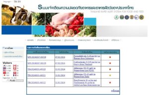 สำนักงานมาตรฐานสินค้าเกษตรและอาหารแห่งชาติ (มกอช.) แนะนำระบบแจ้งเตือนความปลอดภัยอาหารและอาหารสัตว์ของไทย เป็นแหล่งรวมข้อมูลการตรวจพบอาหารที่ไม่ปลอดภัย ทั้งนำเข้าและส่งออก มุ่งเน้นเตือนภัยผู้บริโภค พร้อมกับนำข้อมูลไปจัดทำนโยบายภาครัฐ เพื่อยกระดับความปลอดภัยอาหารในประเทศ แก้ไขปัญหาการส่งออกสินค้าเกษตรและอาหาร