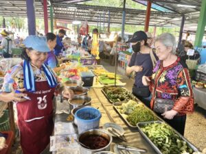 ปิดท้ายแวะเลือกซื้อเลือกหาสินค้าชุมชน เช่นพืชผักสวนครัว ผลไม้ราคาชาวบ้าน ที่ตลาดนัดครูจันทร์เพ็ญอ.บ้านแพรก จ.อยุธยา