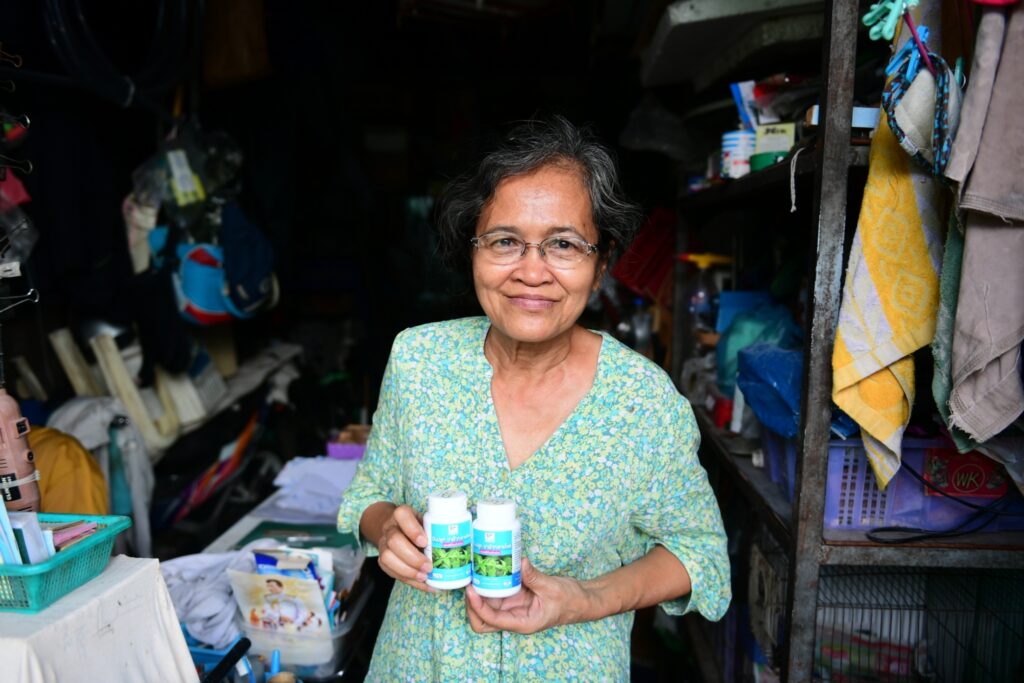นางสาวเสาวลักษณ์ จารุภูมิ อาสาสมัครสาธารณสุขชุมชนตรอกข้าวเม่า (อสส.30 วัดเจ้าอาม) เป็นผู้แทนรับมอบยาสมุนไพรฟ้าทะลายโจร เพื่อนำไปส่งต่อแก่ประชาชนชาวบางกอกน้อย 38 ชุมชน ได้นำไปใช้ในการดูแลตนเอง ซึ่งชาวชุมชนต่างดีใจที่ได้รับยาสมุนไพรในครั้งนี้ และขอบคุณ ซีพี-ซีพีเอฟ ที่มอบความห่วงใยให้กับคนไทยมาตลอด ก่อนหน้านี้ได้รับอาหารจากโครงการ CPF ส่งอาหารจากใจ ร่วมต้านภัยโควิด-19 และโครงการครัวปันอิ่ม ซีพีร้อยเรียงใจสู้ภัยโควิด-19 เช่นเดียวกับ นายเทอดเกียรติ ล้วนโกศล อาสาสมัครชุมชนเติมสุข (อสส.31) เป็นผู้แทนเขตบางพลัด แจกจ่ายแก่ 48 ชุมชน กล่าวว่า ดีใจที่เครือซีพีมอบยาสมุนไพรฟ้าทะลายโจรให้กับประชาชนกลุ่มเปราะบางและผู้ที่มีความเสี่ยง ถือเป็นโครงการที่ดีมากและเป็นประโยชน์อย่างยิ่งต่อพี่น้องชาวไทย