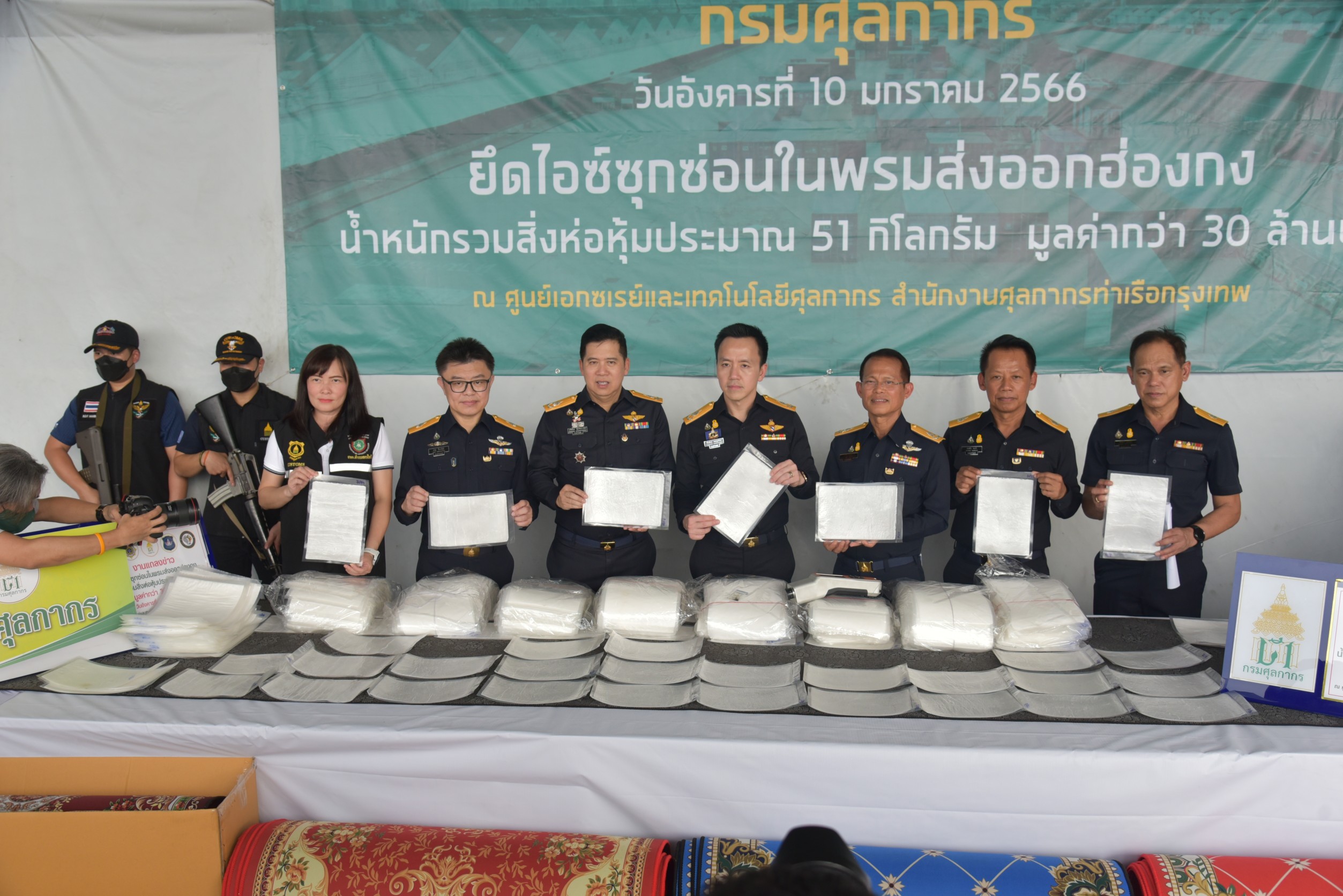 กรมศุลกากรยึดยาเสพติดให้โทษประเภท 1 ไอซ์ (เมทแอมเฟตามีน) ซุกซ่อนในแผ่นพลาสติกใส