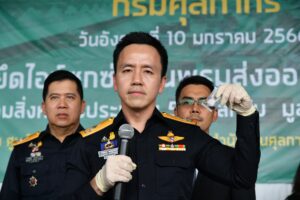 วันนี้ (10 มกราคม 2566) เวลา 14.00 น. นายพันธ์ทอง ลอยกุลนันท์ รองอธิบดีกรมศุลกากร รักษาการในตำแหน่งที่ปรึกษาด้านการพัฒนาและบริหารการจัดเก็บภาษี นายพงศ์เทพ บัวทรัพย์ รองอธิบดีกรมศุลกากรรักษาการในตำแหน่งที่ปรึกษาด้านพัฒนาระบบควบคุมทางศุลกากร นายถวัลย์ รอดจิตต์ ผู้อำนวยการกองสืบสวนและปราบปราม พ.ต.อ.ณรัชต์พล เลิศรัชตะปภัสร์ ผู้อำนวยการสำนักงานศุลกากรท่าเรือกรุงเทพ และหน่วย SITF โดยนายธัญญาวิทย์ พราวพิจักขณากูล ผู้อำนวยการส่วนสืบสวนทางการเงิน สำนักปราบปรามยาเสพติด (ป.ป.ส.) พ.ต.อ.เส้นชัย ฟู่เจริญ ผกก.3 บก.ปส.1 กองบัญชาการตำรวจปราบปรามยาเสพติด (บช.ปส.) และ พ.อ.มารุต