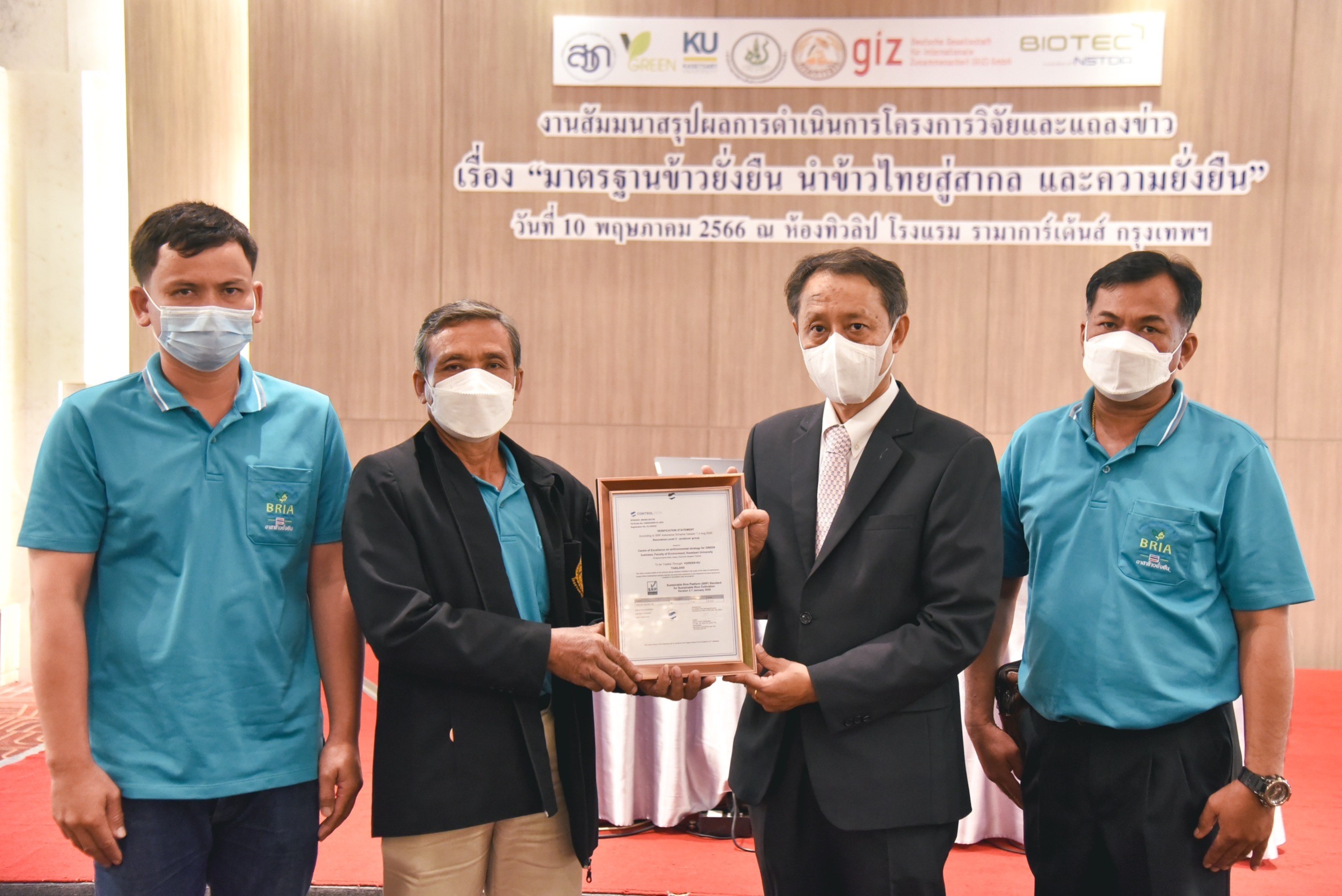 ที่ผ่านมา มกอช. ได้ออกประกาศกำหนดมาตรฐานสินค้าเกษตร : ข้าวยั่งยืน (มกษ.4408-2565) ไว้เป็นมาตรฐานทั่วไป เพื่อยกระดับมาตรฐานการผลิตข้าวให้เกิดความยั่งยืน ซึ่งสอดคล้องกับมาตรฐานการปลูกข้าวที่ยั่งยืน (SRP Standard for Sustainable Rice Cultivation) ของเวทีข้าวที่ยั่งยืน (Sustainable Rice Platform : SRP) เป็นประเทศแรกในอาเซียน รวมทั้งได้ดำเนินการขอเทียบเคียงมาตรฐานข้าวยั่งยืน (มกษ.4408-2565) ของประเทศไทย กับมาตรฐานการปลูกข้าวที่ยั่งยืนของ SRP โดยปัจจุบันได้ยื่นเอกสาร National Interpretation Guideline : NIG ให้ SRP เรียบร้อยแล้ว และอยู่ระหว่างขั้นตอนการพิจารณาตามกระบวนการของ SRP