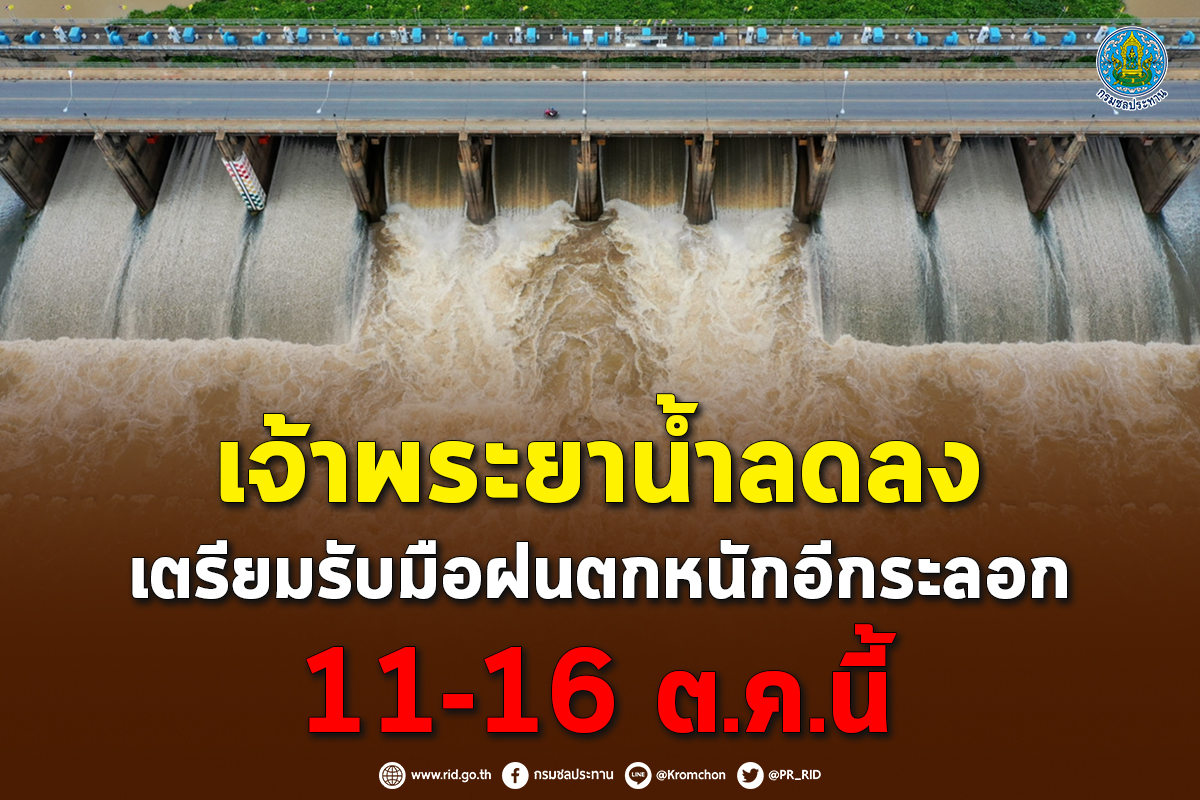 เจ้าพระยาน้ำลดลง เตรียมรับมือฝนตกหนักอีกระลอก 11-16 ต.ค.นี้