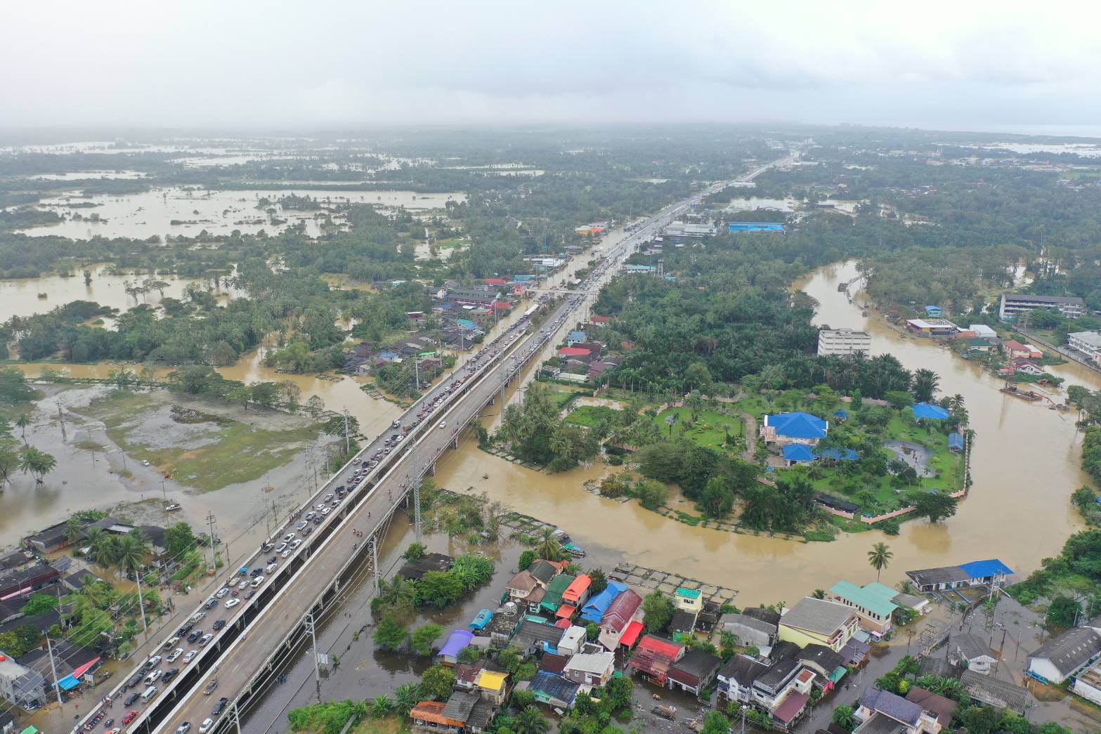 สำหรับสถานการณ์อุทกภัย ปัจจุบันในพื้นที่จังหวัดสงขลา นราธิวาส มีแนวโน้มลดลงอย่างต่อเนื่อง หากไม่มีฝนตกลงมาเพิ่มคาดว่าสถานการณ์จะกลับเข้าสู่สภาวะปกติในเร็ววันนี้ ส่วนที่จังหวัดยะลา และปัตตานี ลุ่มน้ำปัตตานี ที่สถานีวัดน้ำท่า X.10A บริเวณสะพานเดชานุชิต อำเภอเมือง ยังคงมีน้ำล้นตลิ่ง 30-45 เซนติเมตร ส่วนสถานการณ์น้ำในเขื่อนบางลาง ที่มีฝนตกหนักถึงหนักมากบริเวณทางตอนบน ตั้งแต่วันที่ 4-6 มกราคม 2564 ทำให้มีปริมาณน้ำไหลลงลงอ่างฯเป็นจำนวนมาก ปัจจุบัน (10 ม.ค. 63) มีปริมาณน้ำในอ่างฯประมาณ 1,435 ล้าน ลบ.ม. หรือคิดเป็น 99 % และเปิดระบายน้ำผ่านประตูระบายน้ำ (Spillway) จำนวน 322 ลบ.ม./วินาที ส่งผลให้มีน้ำเอ่อล้นตลิ่งแม่น้ำปัตตานีเป็นแห่งๆ