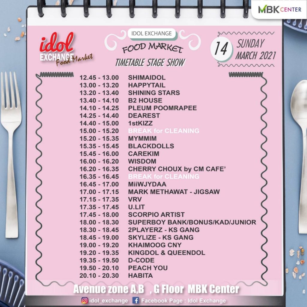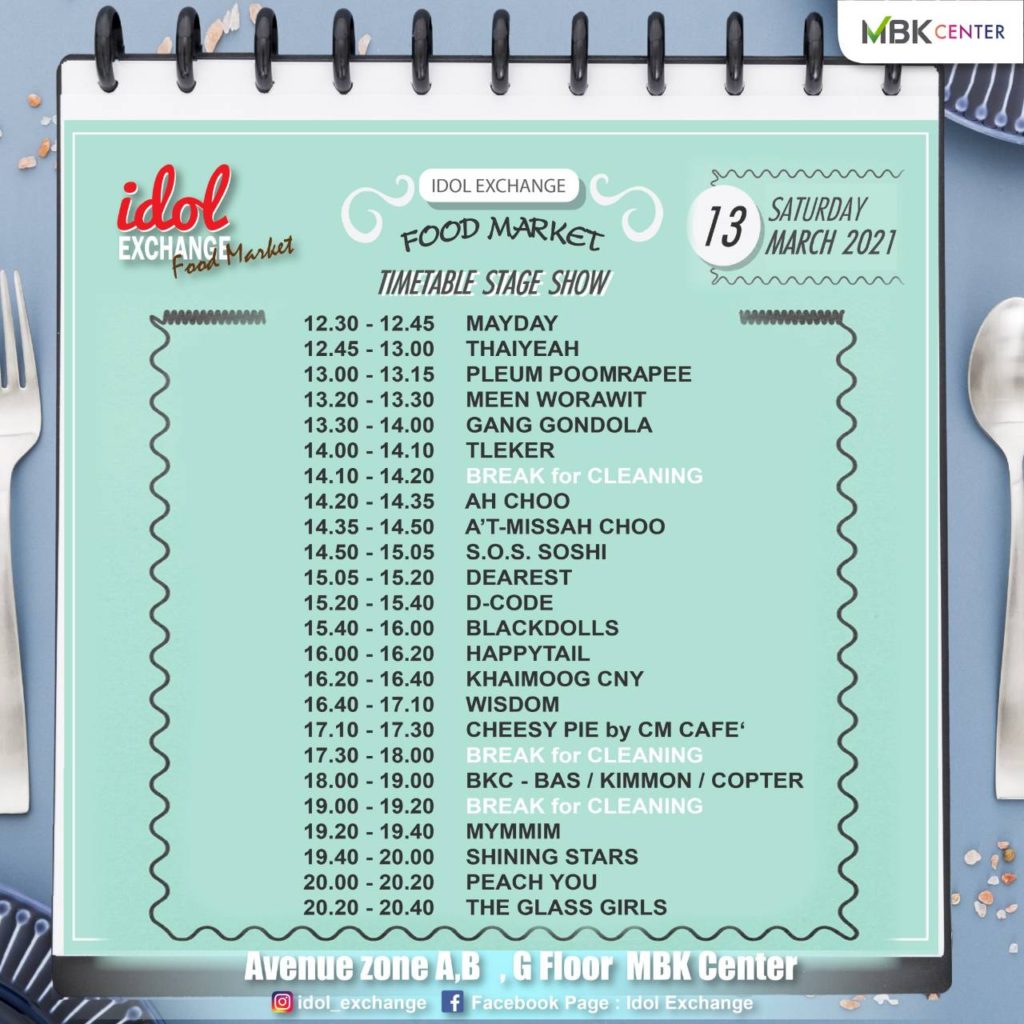 กุ้ง-ศรุดา นิ่มพิทักษ์พงศ์ เจ้าแม่ไอดอล แท็คมือ นาวลิ้ม แห่ง CM CAFÉ, สาวๆ วง Wisdom และนักร้องหนุ่ม ปลื้ม-ภูมิรพี จำภู่ เจ้าของเพลงฮิต “มีสิทธิ์แค่รัก” มาชักชวนเพื่อนๆ เข้าร่วมกิจกรรมประจำเดือนมีนาคมของเหล่าศิลปินไอดอลที่มาพร้อมกับความหรรษาในธีม Food Market เหล่าไอดอลเตรียมเสิร์ฟความอร่อยไม่ช้าใครไว้รอทุกคนระหว่างวันเสาร์ที่ 13 และอาทิตย์ที่ 14 มีนาคม 2564 ตั้งแต่เวลา 11.00 – 20.00 น. ณ ชั้น G ลานเอ็ม บี เค อเวนิว โซน A,B
