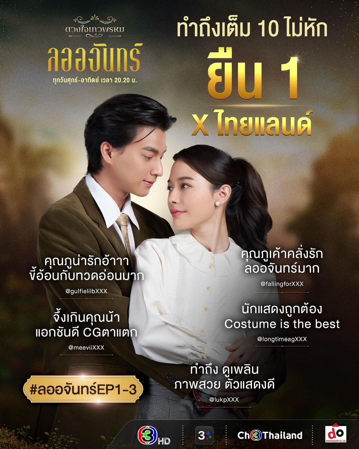 เปิดตัวพุ่งแรงเบอร์สุด สำหรับละครชุด “ดวงใจเทวพรหม” เรื่อง “ลออจันทร์” จาก ค่ายดู เอ็นเตอร์เทนเม้นท์ จำกัด ของผู้จัดฯ เอกนรี วชิรบรรจง ที่ประเดิมคู่แรกด้วย “กลัฟ-คณาวุฒิ” และ “จีน่า-ญีนา” ทำเอาถูกใจแฟน ๆ ชาวโซเชียลทั้งไทยและต่างประเทศ จนสะเทือนโลกออนไลน์ทีเดียว หลังรอคอยกันมานาน พร้อมใจรวมพลังวอร์มนิ้วส่งแฮชแท็ก #ลออจันทร์EP1 ติดเทรนด์ X อันดับ 1 ทั้งประเทศไทย, เวียดนาม และอันดับ 4 มาเลเซีย #ลออจันทร์EP2 ก็ยังคงครองเทรนด์ X อันดับ 1 ประเทศไทย และ มาเลเซีย สำหรับ #ลออจันทร์EP3 ยืนหนึ่งติดเทรนด์ X อันดับ 1 ประเทศไทย, มาเลเซีย และเวียดนาม