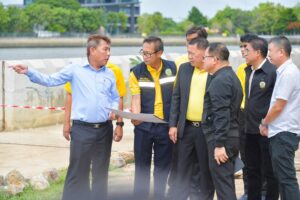 บ่ายวันนี้ (10 มิ.ย. 67) ร้อยเอกธรรมนัส พรหมเผ่า รัฐมนตรีว่าการกระทรวงเกษตรและสหกรณ์ พร้อมด้วย นายประยูร อินสกุล ปลัดกระทรวงเกษตรและสหกรณ์ ลงพื้นที่ติดตามการซ่อมแซมพนังป้องกันตลิ่ง บริเวณวัดเชิงเลน อ.ปากเกร็ด จ.นนทบุรี หลังเกิดการทรุดตัวลง โดยมีนายสุริยพล นุชอนงค์ รองอธิบดีกรมชลประทาน นายชุติมันต์ สกุลพราหมณ์ ผู้อำนวยการสำนักงานชลประทานที่ 11 นายสิริพล รักษนาเวศ ผู้อำนวยการกองพัฒนาแหล่งน้ำขนาดกลาง นายทรงพล สวยสม ผู้อำนวยการสำนักเครื่องจักรกล และผู้เกี่ยวข้องร่วมลงพื้นที่ในครั้งนี้