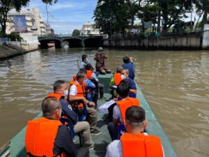 วันนี้ (11 ก.ย. 65) ดร.สุรสีห์ กิตติมณฑล เลขาธิการสำนักงานทรัพยากรน้ำแห่งชาติ (สทนช.) ในฐานะรองผู้อำนวยการกองอำนวยการน้ำแห่งชาติ (กอนช.) พร้อมด้วยนายสมบัติ วรสินวัฒนา รองผู้อำนวยการสำนักการระบายน้ำ กรุงเทพมหานคร ลงพื้นที่ติดตามการป้องกันและแก้ไขน้ำท่วมในเขตกรุงเทพมหานคร ณ ป้อมมหากาฬ คลองโอ่งอ่าง โดยได้รับฟังสรุปสถานการณ์ปัจจุบัน ซึ่งจากอิทธิพลจากร่องมรสุมกำลังปานกลางพาดผ่านภาคเหนือ ภาคกลางตอนบน และภาคตะวันออกเฉียงเหนือ เข้าสู่หย่อมความกดอากาศต่ำที่ปกคลุมบริเวณประเทศเวียดนามตอนใต้ ประกอบกับมรสุมตะวันตกเฉียงใต้ จะคงยังส่งผลให้ภาคกลาง โดยเฉพาะกรุงเทพมหานครมีฝนตกหนัก โดยเมื่อ 24 ชั่วโมงที่ผ่านมา พบว่ามีฝนตกหนักบริเวณเขตวัฒนา บางซื่อ พระโขนง และคลองสามวา พร้อมกันนี้ ได้พิจารณาศักยภาพการรับน้ำในพื้นที่เขตพระนคร รวมทั้งการเตรียมความพร้อมการพร่องน้ำในระบบระบายน้ำหลัก คลองและแก้มลิง เพื่อรองรับน้ำสำหรับในพื้นที่ที่มีฝนหนัก การเตรียมความพร้อมเครื่องสูบน้ำ สถานีสูบน้ำ
