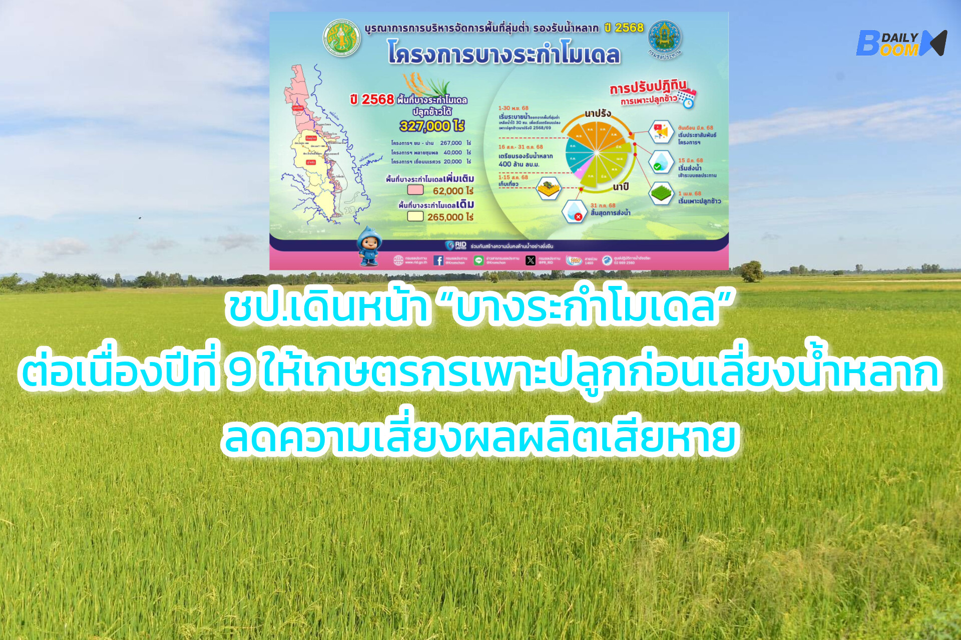 กรมชลประทานเดินหน้า “โครงการบางระกำโมเดล” ต่อเนื่องเป็นปีที่ 9 ขยายพื้นที่โครงการฯ อีกกว่า 6 หมื่นไร่ ให้เกษตรกรทำนาปีก่อนฤดูน้ำหลากจะมาถึง หวังลดความเสียหายให้เกษตรกร