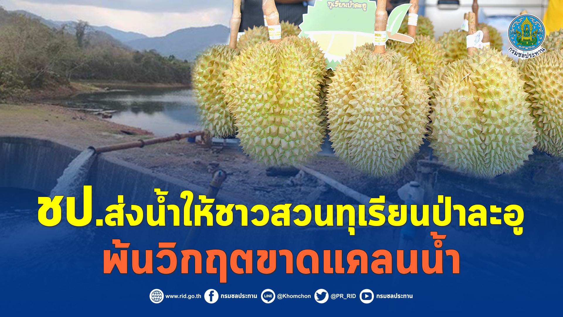 กรมชลประทาน สูบน้ำจากอ่างเก็บน้ำป่าเลา ช่วยเหลือชาวสวนทุเรียนป่าละอู จังหวัดประจวบคีรีขันธ์ หลังประสบปัญหาขาดแคลนน้ำ เพื่อให้รอดพ้นจากวิกฤตในครั้งนี้
