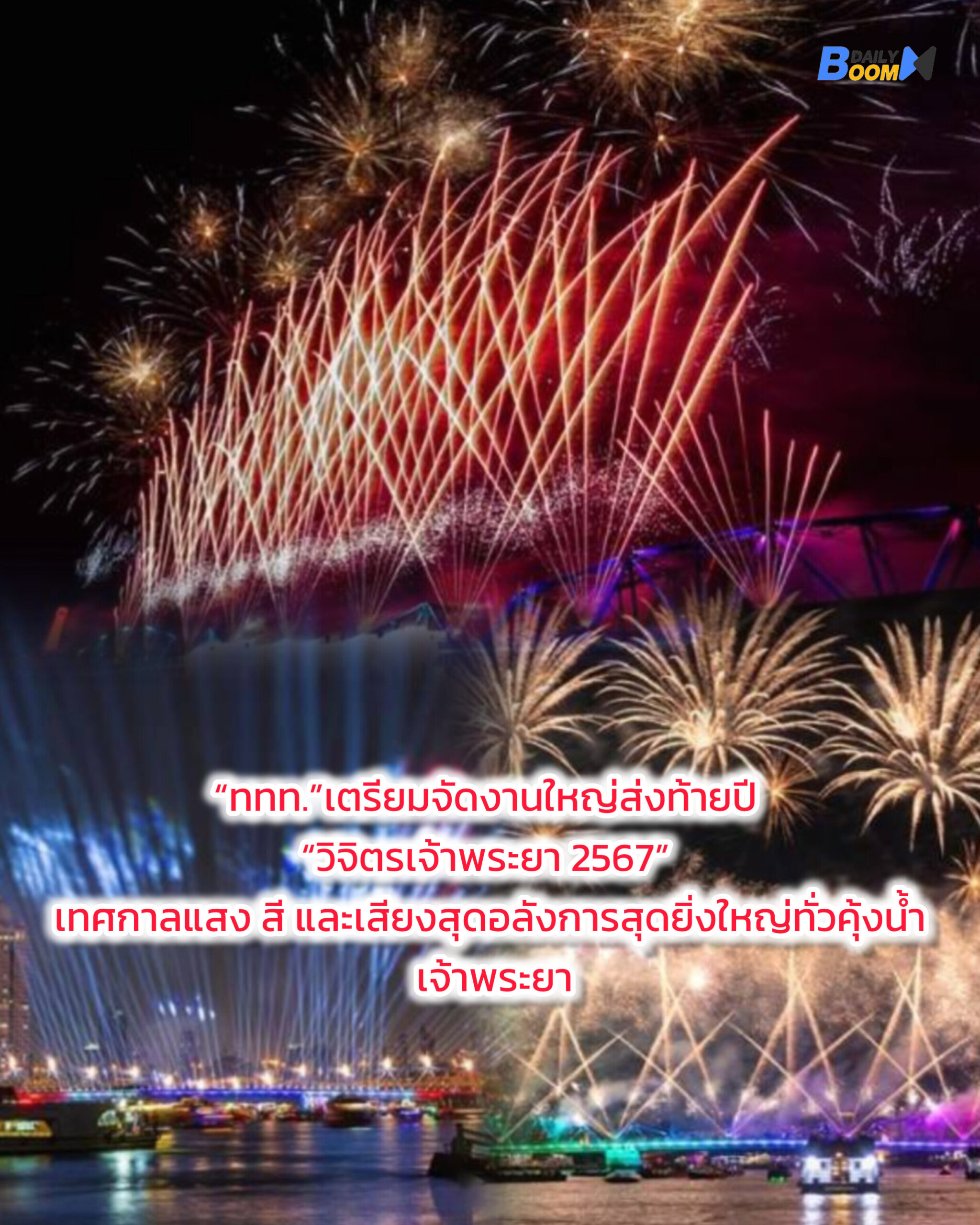 “ททท.” เตรียมจัดงานใหญ่ส่งท้ายปีงาน “วิจิตรเจ้าพระยา 2567” เทศกาลแสง สี และเสียงสุดอลังการสุดยิ่งใหญ่ ณ บริเวณริมแม่น้ำเจ้าพระยา ระหว่าง16พ.ย. – 15 ธ.ค.67 นี้ เพื่อเฉลิมฉลองและส่งเสริมมรดกทางวัฒนธรรมของประเทศไทย