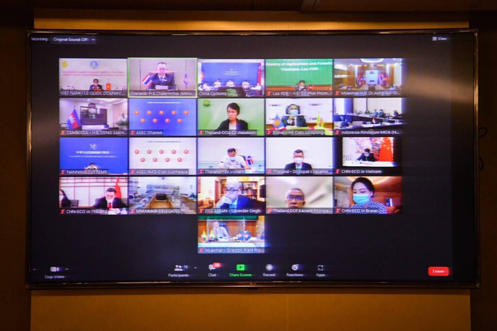“เพื่อสร้างความมั่นใจแก่ประเทศสมาชิกอาเซียนและจีนว่า แม้ว่าในช่วงระยะเวลากว่าหนึ่งปีที่ผ่านมา ทั่วโลกต้องเผชิญกับภาวะวิกฤตจากการระบาดของโรคโควิด-19 ไทยในฐานะประเทศผู้ผลิตและส่งออกสินค้าเกษตรและอาหาร ได้ใช้ความพยายามอย่างสูงสุดในการควบคุมการระบาดของโรคโควิด-19 และควบคุมการปนเปื้อนของเชื้อโควิด-19 ในสินค้าเกษตรและอาหารที่ไทยผลิตและส่งออก โดยปฏิบัติตามหลักมาตรการสากล เพื่อให้มั่นใจว่าสินค้าเกษตรและอาหารของไทยมีความปลอดภัย”นายเฉลิมชัย กล่าว
