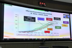 ดร.ทวีศักดิ์ ธนเดโชพล รองอธืบดีกรมชลประทาน เปิดเผยถึงสถานการณ์น้ำว่า ปัจจุบัน (13 พ.ย. 66) อ่างเก็บน้ำขนาดใหญ่และขนาดกลางทั่วประเทศ มีปริมาณน้ำรวมกันทั้งสิ้น 61,599 ล้าน ลบ.ม. (81% ของความจุอ่างฯ รวมกัน) เป็นน้ำใช้การได้ 37,657 ล้าน ลบ.ม. (72% ของความจุอ่างฯรวมกัน) เฉพาะลุ่มน้ำเจ้าพระยา 4 เขื่อนหลัก (เขื่อนภูมิพล เขื่อนสิริกิติ์ เขื่อนแควน้อยบำรุงแดน และเขื่อนป่าสักชลสิทธิ์) มีปริมาณน้ำรวมกันทั้งสิ้น 18,345 ล้าน ลบ.ม. (74% ของความจุอ่างฯ รวมกัน) ปริมาณน้ำใช้การได้ 11,649 ล้าน ลบ.ม. (64% ของความจุอ่างฯ รวมกัน) จนถึงขณะนี้มีการจัดสรรน้ำช่วงฤดูแล้งปี 66/67 ทั้งประเทศไปแล้ว 1,599 ล้าน ลบ.ม. หรือคิดเป็นร้อยละ 8 ของแผนฯ เฉพาะลุ่มเจ้าพระยามีจัดสรรไปแล้ว 254 ล้าน ลบ.ม. หรือคิดเป็นร้อยละ 5 ของแผนฯ