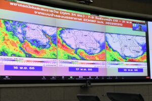วันนี้ (13 พ.ย. 66) ที่ศูนย์ปฏิบัติการน้ำอัจฉริยะ (SWOC) กรมชลประทาน ถนนสามเสน ดร.ทวีศักดิ์ ธนเดโชพล รองอธิบดีกรมชลประทาน เป็นประธานการประชุมคณะอนุกรรมการติดตามและวิเคราะห์แนวโน้มสถานการณ์น้ำ ผ่านระบบ Video Conference ไปยังสำนักงานชลประทานที่ 1-17 สำนักเครื่องจักรกล และหน่วยงานที่เกี่ยวข้อง อาทิ กรมอุตุนิยมวิทยา สถาบันสารสนเทศทรัพยากรน้ำ กรมทรัพยากรน้ำ กรมป้องกันและบรรเทาสาธารณภัย สำนักการระบายน้ำ (กรุงเทพมหานคร) และการไฟฟ้าฝ่ายผลิตแห่งประเทศไทย(กฟผ.) เป็นต้น เพื่อติดตามและวิเคราะห์สถานการณ์น้ำในอ่างเก็บน้ำ แหล่งน้ำ และแม่น้ำสายหลักต่าง ๆ สำหรับเป็นข้อมูลในการบริหารจัดการน้ำให้สอดคล้องและเหมาะสมในแต่ละพื้นที่