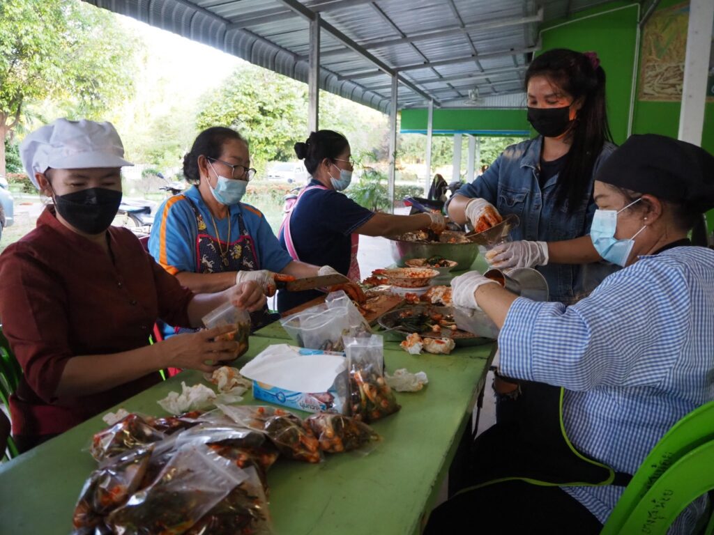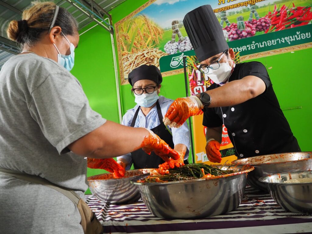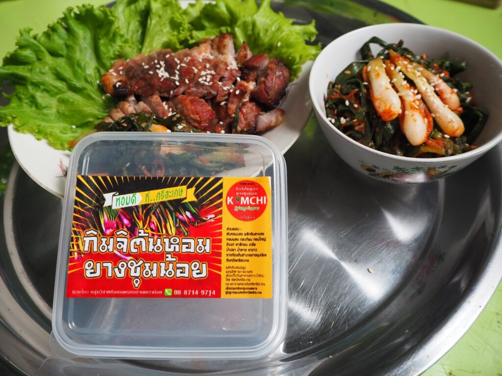นายวิศณ์ ประสานพันธ์ หัวหน้าส่วนยุทธศาสตร์การเกษตร สภาเกษตรกรจังหวัดศรีสะเกษ เปิดเผยว่า ช่วงเวลาที่ผ่านมาภาคการเกษตรเผชิญกับสถานการณ์ที่หลากหลายมากตั้งแต่การแพร่ระบาดไวรัสโคโรนา 2019 (covid-19) ที่ขยายลุกลามไปทั่ว ภาวะฝนแล้ง น้ำท่วม กระทบผลผลิต สินค้าล้นตลาดและขาดรายได้ การดำเนินชีวิตติดขัดยากลำบากแตกต่างกันไป สภาเกษตรกรจังหวัดศรีสะเกษได้รับปัญหาต่างๆจากเกษตรกรและเข้าช่วยเหลือ แก้ปัญหา รวมทั้งหาช่องทางทำการตลาดเพื่อบรรเทาความเดือดร้อน ยกตัวอย่างเช่น เกษตรกรผู้ปลูกหอมแดงอำเภอยางชุมน้อย พื้นที่ปลูกหอมแดงกว่า 250 ไร่ ถูกน้ำจากลำน้ำมูลเอ่อเข้าท่วมเสียหายทั้งหมด ขณะที่การสำรวจแปลงหอมแดงในพื้นที่อำเภอยางชุมน้อย พบพื้นที่เสียหายมากกว่า 2,000 ไร่ เกษตรกรขอความช่วยเหลือมาทางสภาเกษตรกรจังหวัดศรีสะเกษ จึงเชิญจังหวัด เกษตรจังหวัด เกษตรอำเภอ พาณิชย์จังหวัด ร่วมปรึกษา รวมทั้ง ‘เชฟเต๋า’ นายสิรพงศ์ สังข์แก้ว วิทยากรชำนาญการ สาขาการประกอบอาหาร ศูนย์พัฒนาฝีมือแรงงานจังหวัดศรีสะเกษ ว่าน่าจะแปรรูปเป็นกิมจิได้ จึงทดลองทำกิมจิรอบแรก 4 กิโลกรัม ถือว่าผ่าน รอบที่ 2 ในงานช่วยเกษตรกรผู้ปลูกหอมแดงพื้นที่โดนน้ำท่วม โดยเชิญแกนนำกลุ่มมาเรียนรู้การทำกิมจิแล้วปรับรสชาติ เพิ่มเป็น 40 กิโลกรัม ขายดีขึ้น รอบที่ 3 ทำจำหน่ายในงานตักบาตรของจังหวัด 140 กิโลกรัม จำหน่ายหมดเลย ภายใต้แบรนด์ ‘กิมจิต้นหอมยางชุมน้อย’
