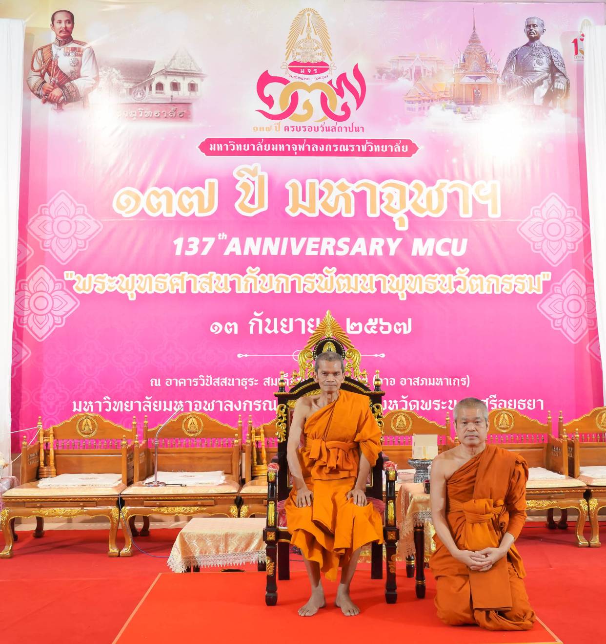 วันศุกร์ที่ 13 กันยายน 2567 เวลา 09.00 น. มหาวิทยาลัยมหาจุฬาลงกรณราชวิทยาลัย จังหวัดพระนครศรีอยุธยา จัดงานครบรอบ 137 ปี โดยมีพระพรหมวัชรธีราจารย์, ศ.ดร. อธิการบดีมหาวิทยาลัยมหาวิทยาลัยมหาจุฬาลงกรณราชวิทยาลัย เป็นประธานฝ่ายสงฆ์ พล.อ.ต.สุพิชัย สุนทรบุระ รองเลขาธิการสำนักพระราชวัง เป็นประธานฝ่ายฆราวาส พร้อมด้วยพระราชวัชรสารบัณฑิต, รศ.ดร. รองอธิการบดีฝ่ายวางแผนและพัฒนา และ รศ.ดร.สุรพล สุยะพรหม รองอธิการบดีฝ่ายกิจการทั่วไป