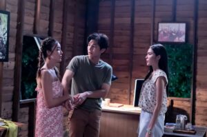 เมื่อผู้กำกับฯ สั่งเคลื่อนกล้อง สองนักแสดงก็เล่นไปตามบทไหลลื่นกันทีเดียว จนถึงคิวที่ สาวขวัญ ต้องร้องกรี๊ดดด และเต้นไปทั่วบ้าน และกระโจนเข้าหา หนุ่มมิว ทั้งคู่ล้มไปที่เตียง ผู้กำกับฯ ก็ยังไม่สั่งคัท จนถึงให้คิว สาวชาล็อต วิ่งขึ้นมาเห็นภาพบาดตา แล้วก็วิ่งกลับลงไป งานนี้ยังไม่จบนะจ้ะ!!!