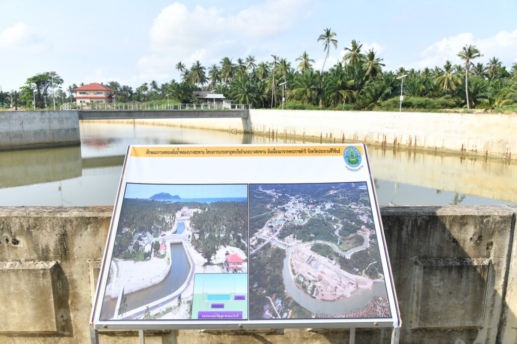 โดยวางแผนดำเนินงานโครงการบรรเทาอุทกภัยอำเภอบางสะพาน อันเนื่องมาจากพระราชดำริ เพื่อแก้ไขปัญหาดังกล่าว ด้วยหลักการ ต้นเก็บ กลางหน่วง ปลายระบาย ดังนี้