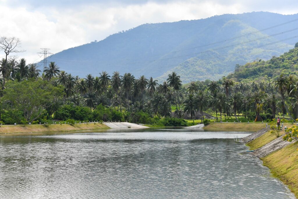 สำหรับโครงการแก้มลิงห้วยยางแพรกขวาพร้อมอาคารประกอบและระบบส่งน้ำอันเนื่องมาจากพระราชดำริ เป็นโครงการที่พระบาทสมเด็จพระเจ้าอยู่หัว ทรงพระกรุณาโปรดเกล้าฯ รับเป็นโครงการอันเนื่องมาจากพระราชดำริ เมื่อวันที่ 9 ตุลาคม 2562 ตามที่นายอำนาจ ปานทิพย์ และราษฎรตำบลห้วยยาง อำเภอทับสะแก จังหวัดประจวบคีรีขันธ์ ขอพระราชทานความช่วยเหลือ ซึ่งจะแบ่งเป็น 2 กิจกรรมหลัก ได้แก่ 1.ก่อสร้างแก้มลิง เป็นทำนบดิน กว้าง 4 เมตร สูง 5 เมตร ความยาวโดยรอบ 790 เมตร ความจุ 100,000 ลูกบาศก์เมตร 2.ก่อสร้างระบบส่งน้ำ กรมชลประทานได้ดำเนินการก่อสร้างแล้วเสร็จเมื่อปี 2564 ช่วยบรรเทาและแก้ไขปัญหาการขาดแคลนน้ำอุปโภคบริโภค การเกษตร และรักษาระบบนิเวศให้แก่ราษฎรในพื้นที่ตำบลห้วยยาง อำเภอทับสะแก จำนวน 4 หมู่บ้าน ได้แก่ หมู่ที่ 4 บ้านห้วยมะ หมู่ที่ 8 บ้านคอกม้า หมู่ที่ 9 บ้านหนองพลับ และหมู่ที่ 13 บ้านจั่นเสือ ราษฎร 499 ครัวเรือน พื้นที่รับประโยชน์ประมาณ 500 ไร่ ทั้งยังเป็นสถานที่พักผ่อนหย่อนใจ ช่วยส่งเสริมคุณภาพชีวิตที่ดีให้แก่ราษฎรในพื้นที่ได้อีกด้วย