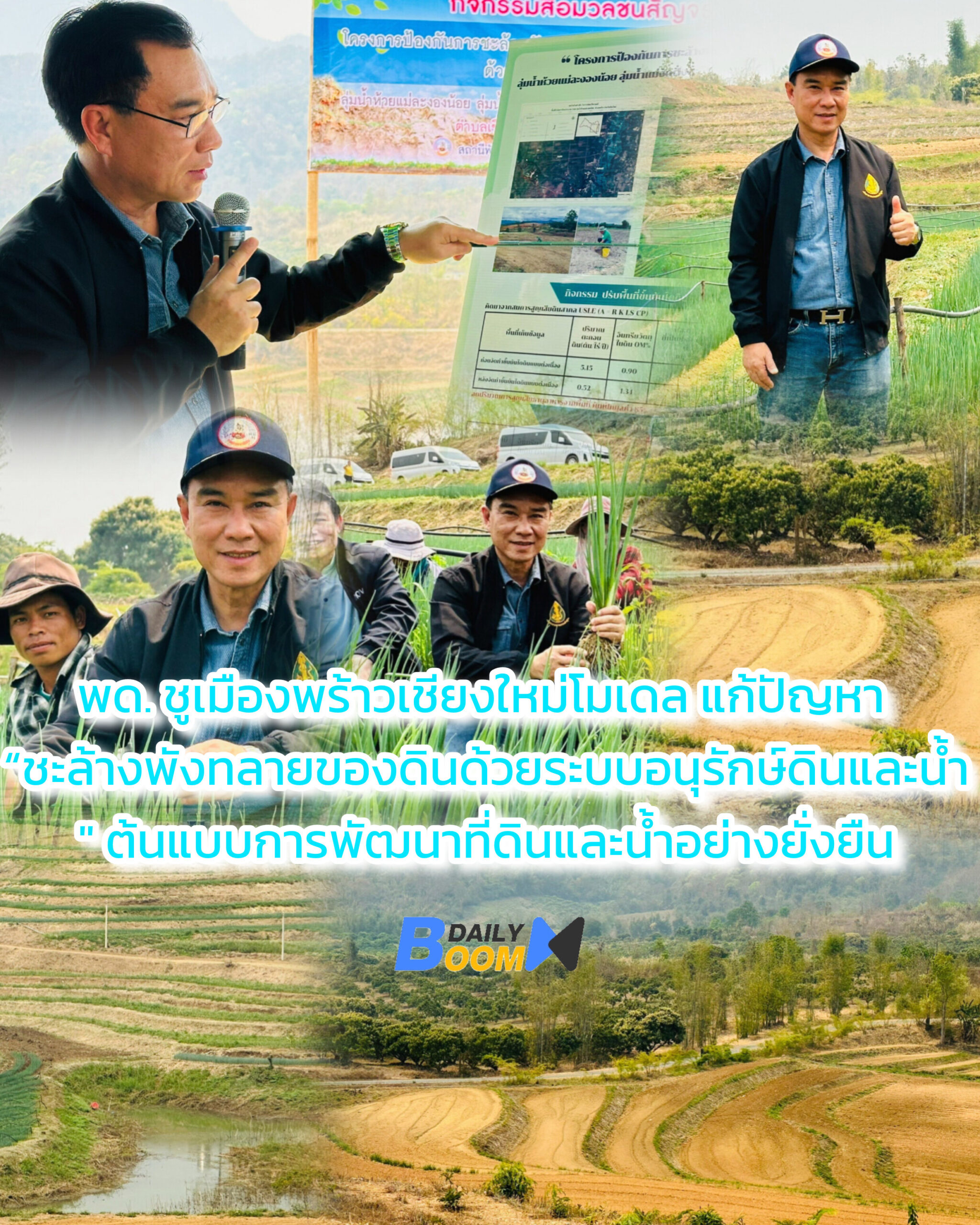 วันอาทิตย์ที่ 16 มีนาคม พ.ศ. 2568 ดร.อาทิตย์ ศุขเกษม รองอธิบดีกรมพัฒนาที่ดินด้านวิชาการ ในฐานะโฆษกกรมพัฒนาที่ดิน พร้อมด้วยนายสมบูรณ์ ธิจันทร์ ผู้อำนวยการสำนักงานพัฒนาที่ดินเขต 6 นายฆนนาท ภู่กรรณ์ เลขานุการกรม ดร.ธนากร นาเชียงใต้ ผู้อำนวยการสำนักวิศวกรรมเพื่อการพัฒนาที่ดิน นายนิลภัทร คงพ่วง ผู้อำนวยการสถานีพัฒนาที่ดินเชียงใหม่ ข้าราชการและเจ้าหน้าที่ในสังกัดฯ ลงพื้นที่ติดตามการดำเนินงานโครงการป้องกันการชะล้างพังทลายของดินและฟื้นฟูพื้นที่เกษตรกรรม ด้วยระบบอนุรักษ์ดินและน้ำ ลุ่มน้ำห้วยแม่ละงองน้อย ลุ่มน้ำแม่งัดฝั่งตะวันออก ลุ่มน้ำสาขาน้ำแม่งัด ลุ่มน้ำหลักแม่น้ำปิง ตำบลเขื่อนผาก อำเภอพร้าว จังหวัดเชียงใหม่ พื้นที่ต้นแบบที่ประสบความสำเร็จในแก้ปัญหาชะล้างพังทลายของดินด้วยระบบอนุรักษ์ดินและน้ำและพัฒนาฟื้นฟูพื้นที่เกษตรกรรมด้วยการบริหารจัดการน้ำ โครงการป้องกันการชะล้างพังทลายของดินฯ ช่วยป้องกันผลกระทบจากตะกอนดินต่อคุณภาพและปริมาณน้ำในอ่างเก็บน้ำ ลดปัญหาการขาดแคลนน้ำ โดยมีผู้นำท้องที่/ท้องถิ่นและเกษตรกร ร่วมให้การต้อนรับ