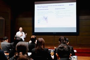 ด้านนายสัตวแพทย์ปราโมทย์ ตาฬวัฒน์ นายกสัตวแพทยสมาคมแห่งประเทศไทย กล่าวว่า การระบาดของโรคอุบัติใหม่และโรคประจำถิ่นที่มีการกลายพันธุ์อยู่ตลอดเวลา ส่งผลให้เกิดความสูญเสียทางเศรษฐกิจอย่างมีนัยสำคัญจากการเจ็บป่วยและการตายของสัตว์ ต่อเนื่องไปถึงปัญหาการใช้ยาปฏิชีวนะในฟาร์มปศุสัตว์เพื่อควบคุมและรักษาโรคที่ไม่สมเหตุสมผล ซึ่งจะนำไปสู่ปัญหาเชื้อดื้อยาในอนาคต การใช้วัคซีนออโตจีนัสจะช่วยแก้ปัญหาการระบาดของโรคในฟาร์มและลดการพึ่งพาการใช้ยาปฏิชีวนะได้ การใช้วัคซีนชนิดนี้เป็นทางเลือกที่น่าสนใจในการแก้ปัญหาการใช้ยาปฏิชีวนะไม่สมเหตุสมผล เนื่องจากเป็นวัคซีนที่มีความจำเพาะต่อเชื้อโรคที่ระบาดในพื้นที่ และตอบสนองต่อการเปลี่ยนแปลงของเชื้อโรคได้อย่างทันท่วงที สามารถควบคุมโรคได้อย่างมีประสิทธิภาพและช่วยลดการใช้ยาปฏิชีวนะในฟาร์มปศุสัตว์อย่างเป็นรูปธรรมตามแนวทางของกรมปศุสัตว์ ซึ่งการพัฒนาวัคซีนออโตจีนัสให้ได้ผลสูงสุดและใช้ตามมาตรฐานสากลจะเป็นกุญแจสำคัญในการยกระดับการจัดการสุขภาพสัตว์ในฟาร์มปศุสัตว์ไทย เพื่อสร้างความมั่นคงทางเศรษฐกิจและเสริมสร้างความยั่งยืนของอุตสาหกรรมปศุสัตว์ไทยในอนาคต