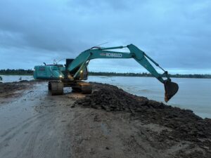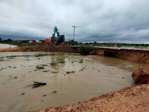 5. สถานการณ์ปัจจุบันระดับน้ำอยู่ต่ำกว่าระดับกัดเซาะ ซึ่งเป็นระดับที่สามารถเข้าทำการปิดทำนบดินที่ขาดได้ ด้วยการทำพนังกั้นน้ำกึ่งถาวร เว้นช่วงให้น้ำไหลผ่านได้ เมื่อใกล้หมดฤดูฝนจะปิดทำนบแบบถาวร เพื่อให้สามารถเก็บน้ำไว้ใช้ในฤดูแล้งหน้าได้ต่อไป